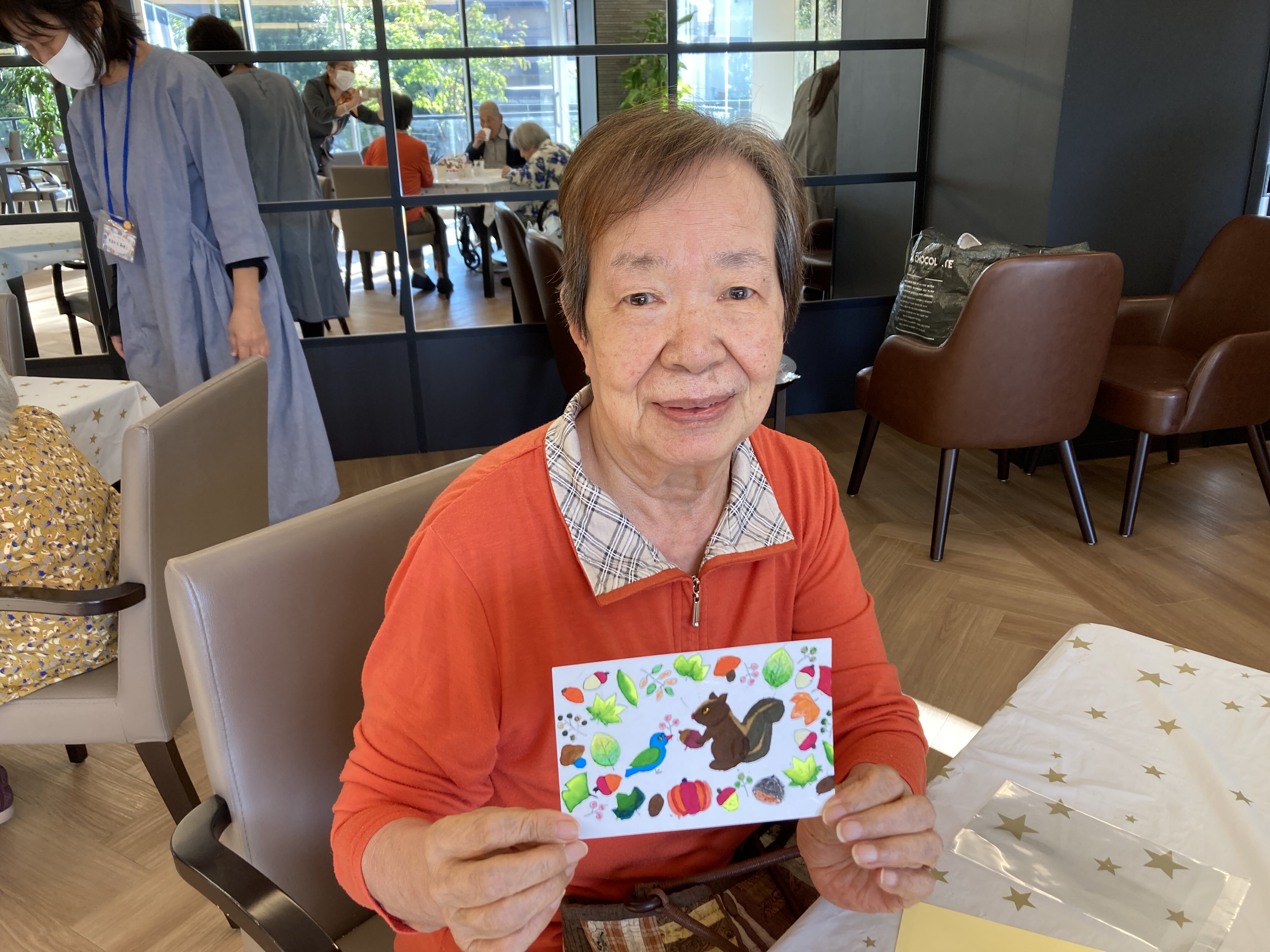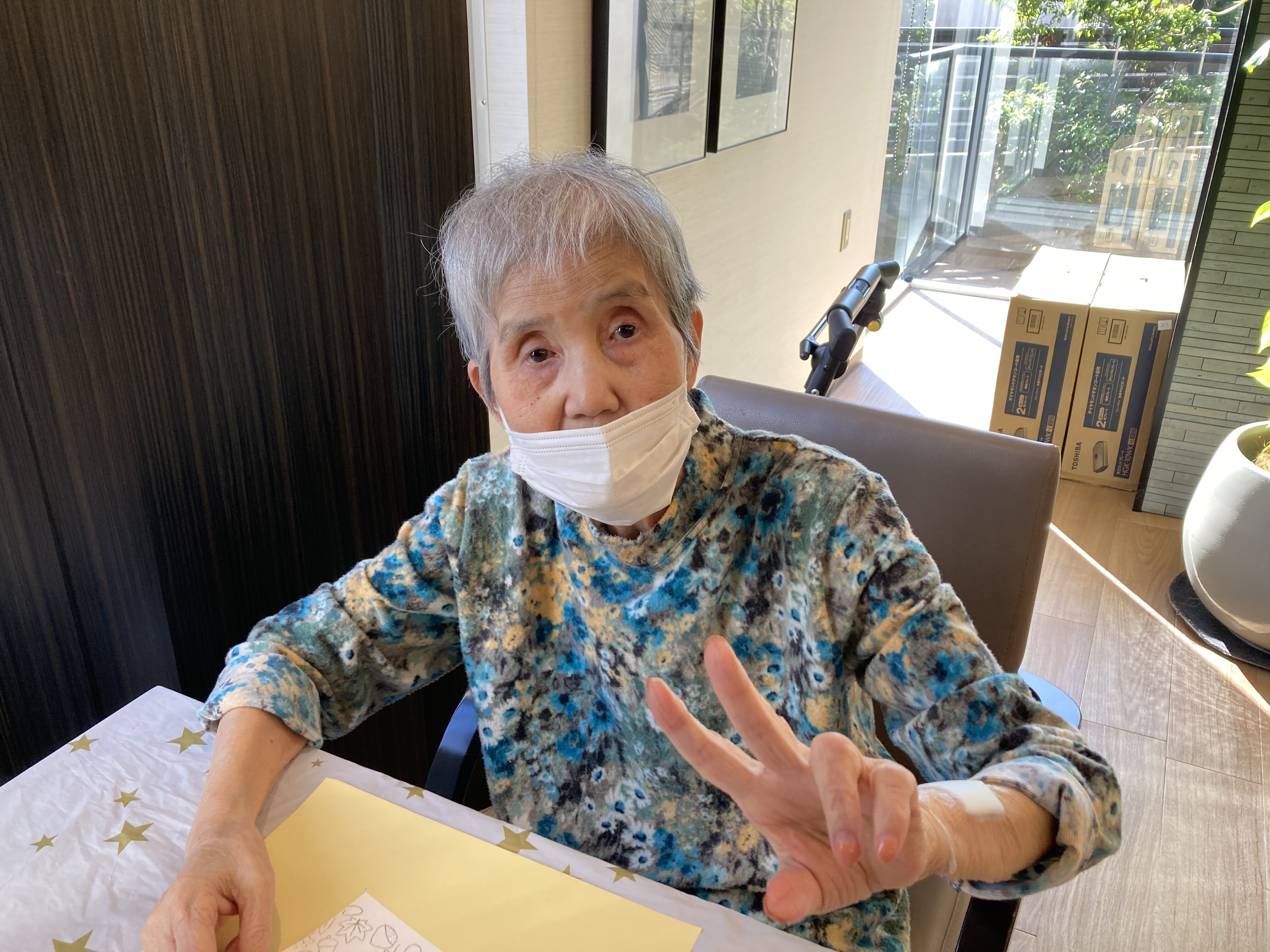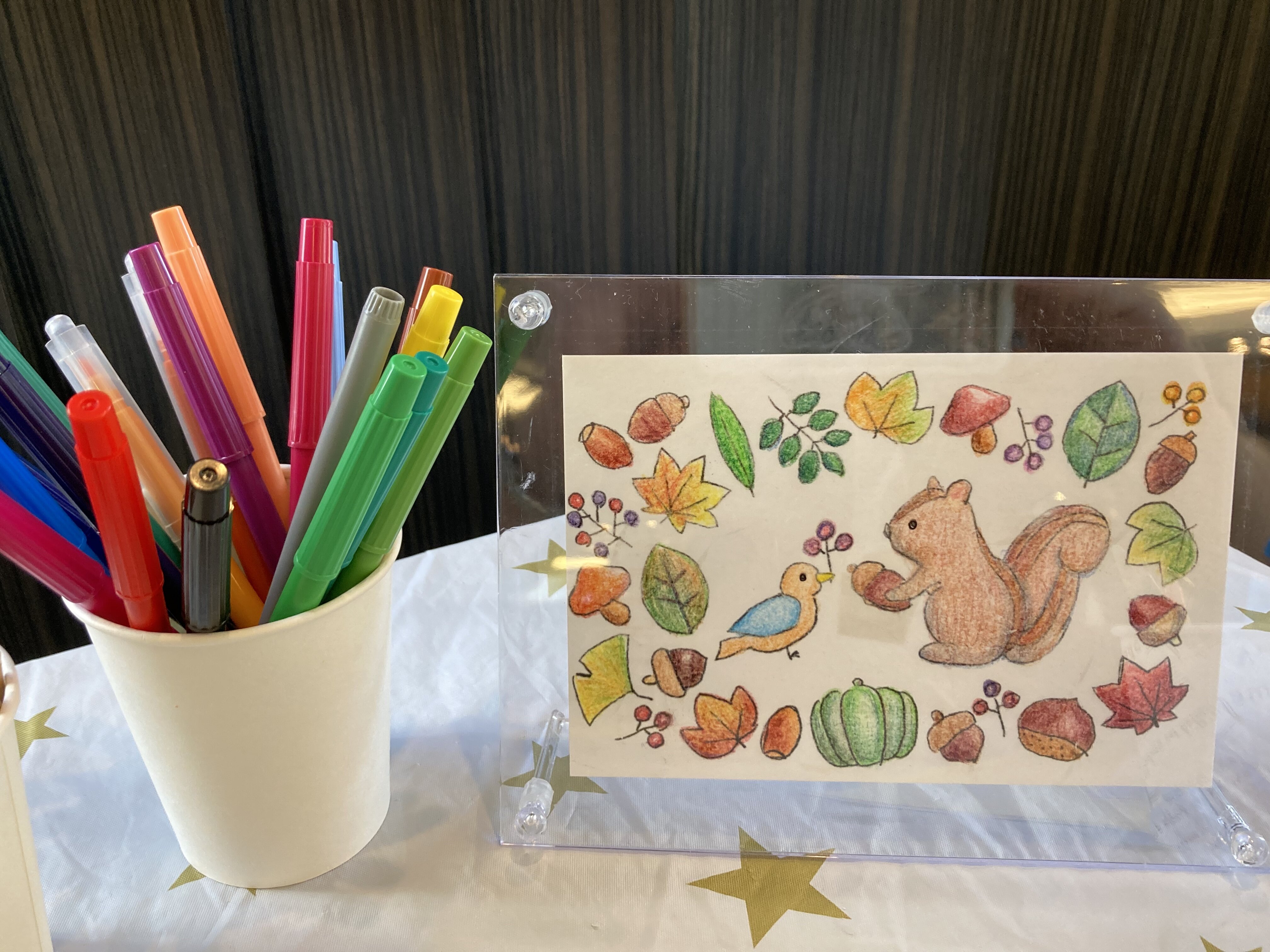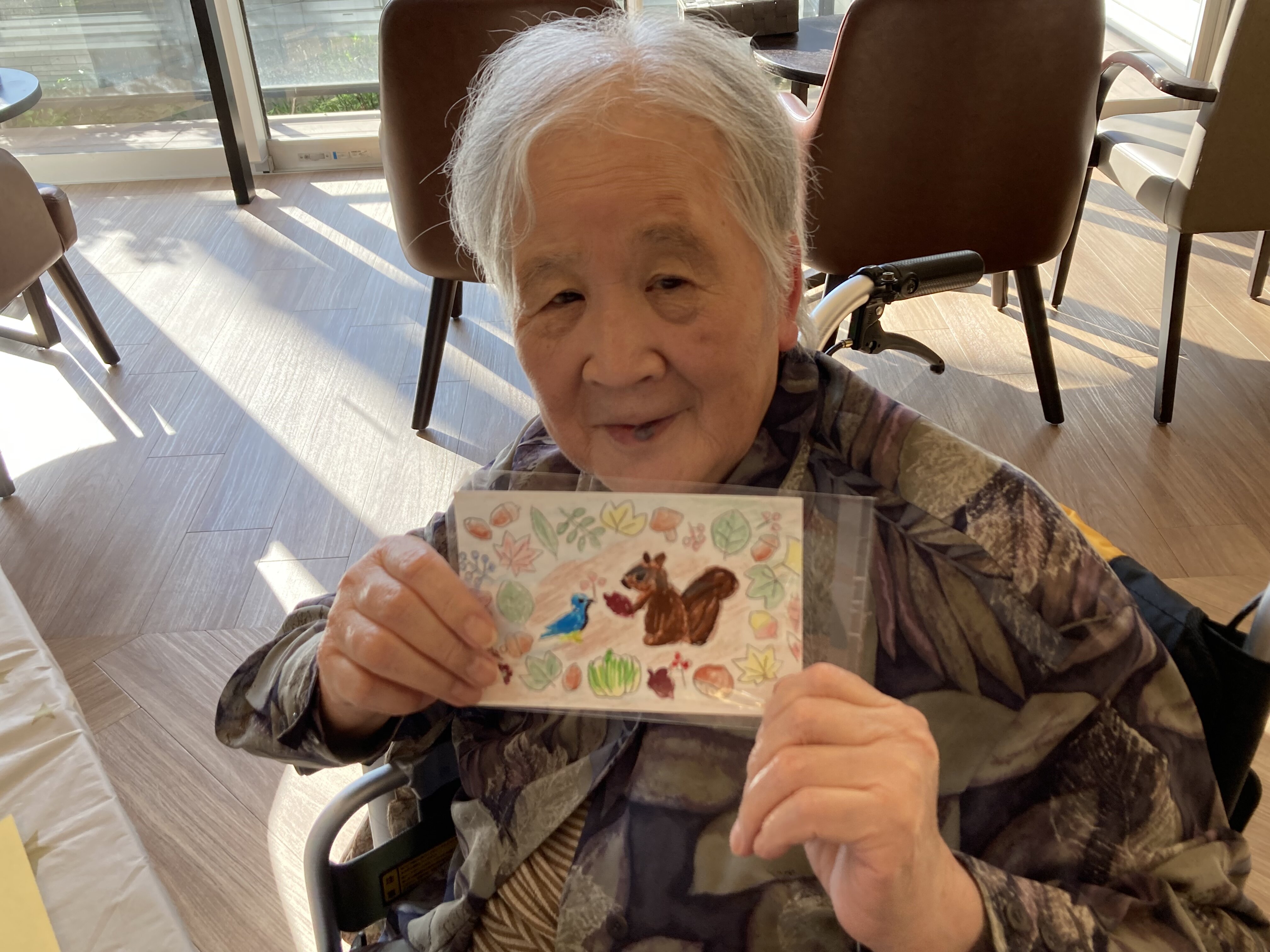 ご自分で塗られた塗り絵で、