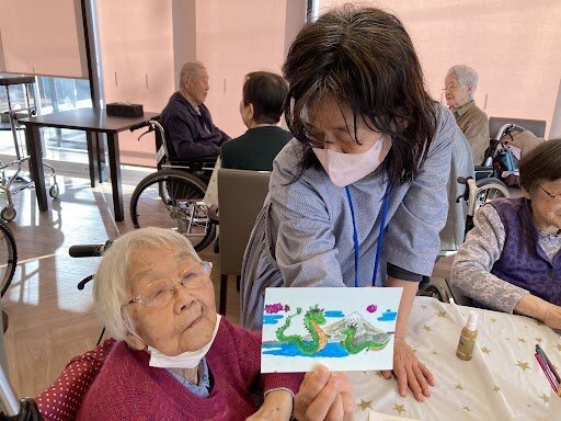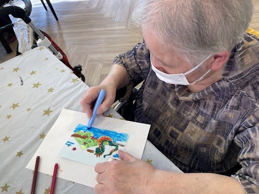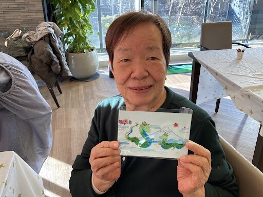 辰、「昇り龍」にアロマ塗り絵をしていきます。