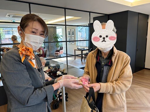 男性のご入居者様に、ラッピングしたお菓子とチョコをお渡ししました◝(⑅•ᴗ•⑅)◜..°♡
