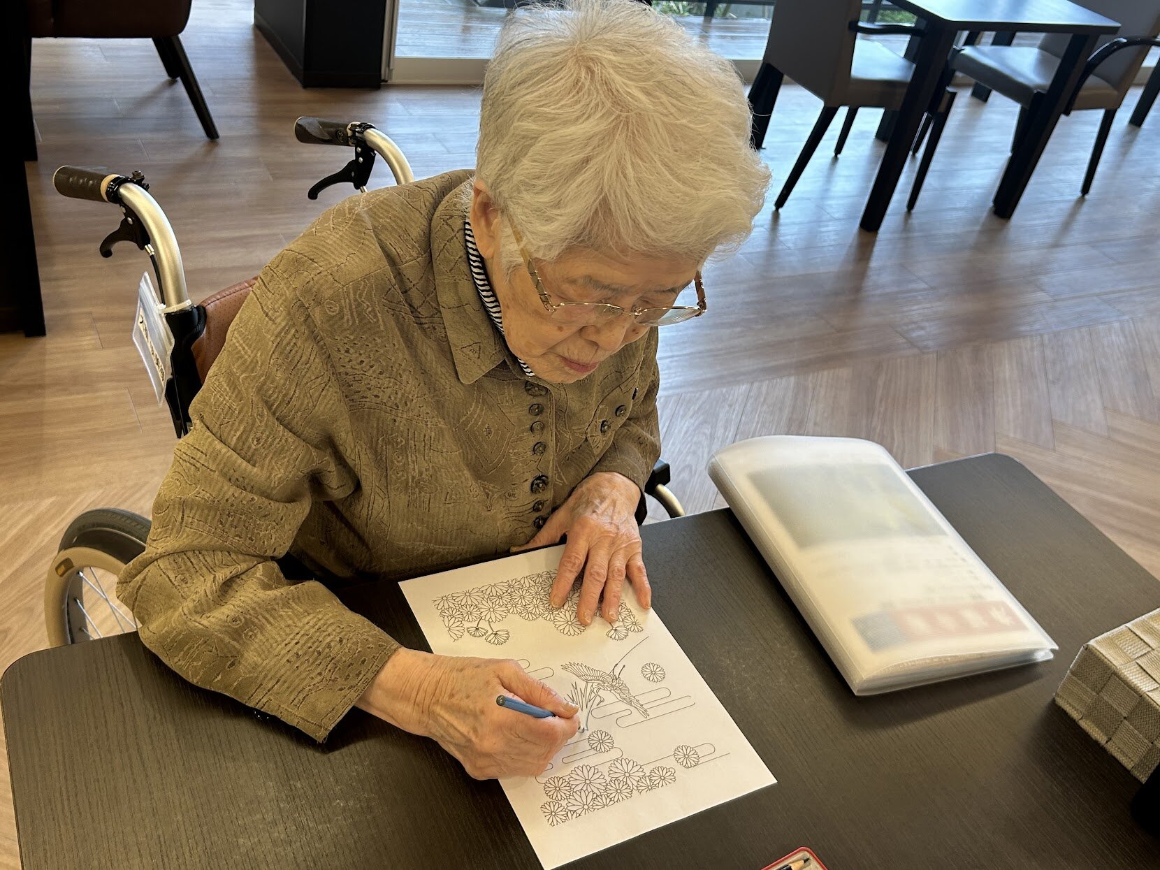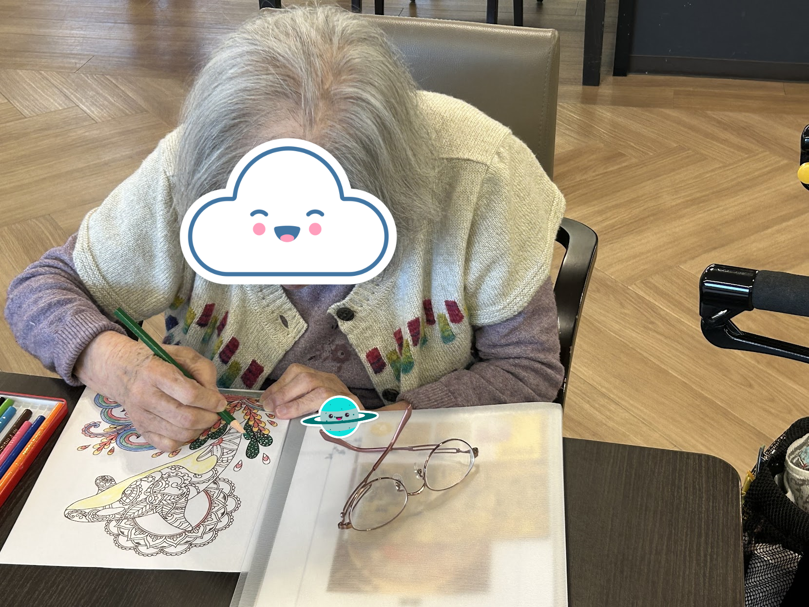 レストランでは、一生懸命 塗り絵をされておられる ご入居者様がおられました(o^―^o)
