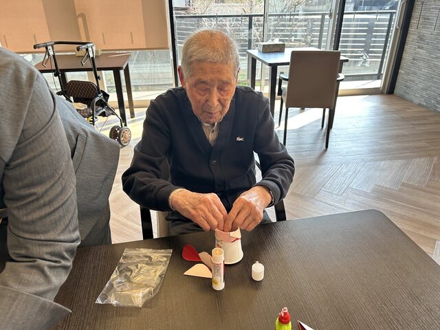 3月27日に来て頂く南宇治中学ブラスバンド部の皆さんに送る花を折り紙で作製しました(*'ω'*)