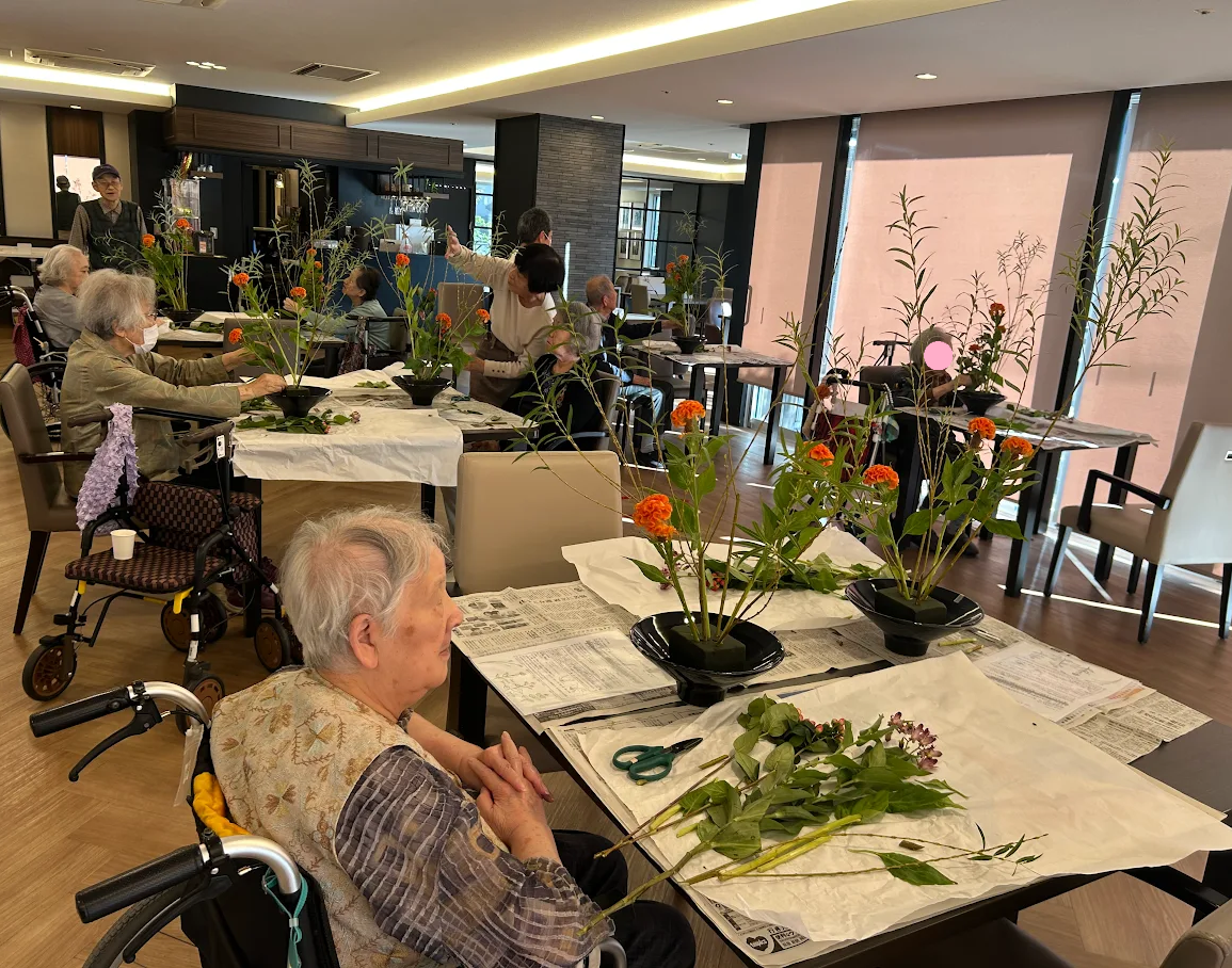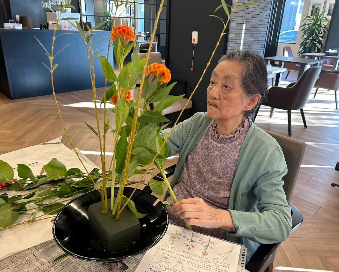 本日は、人気のレクリエーションの一つである『生け花』のご様子をお伝え致します。