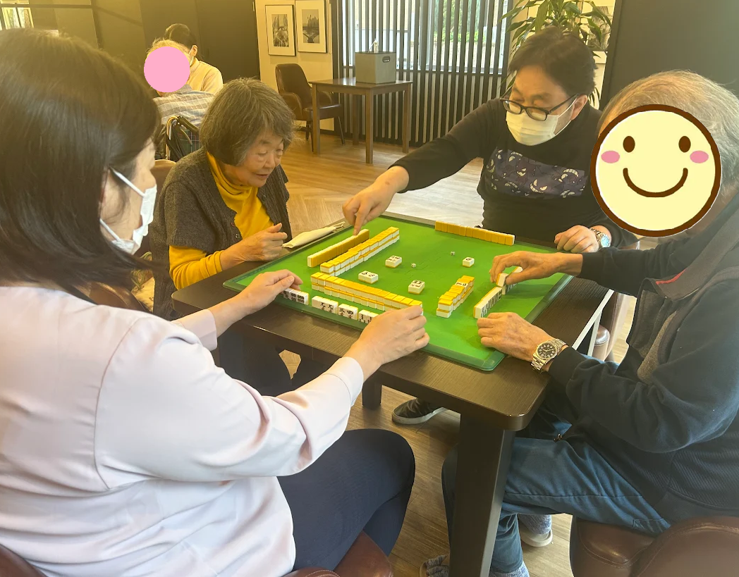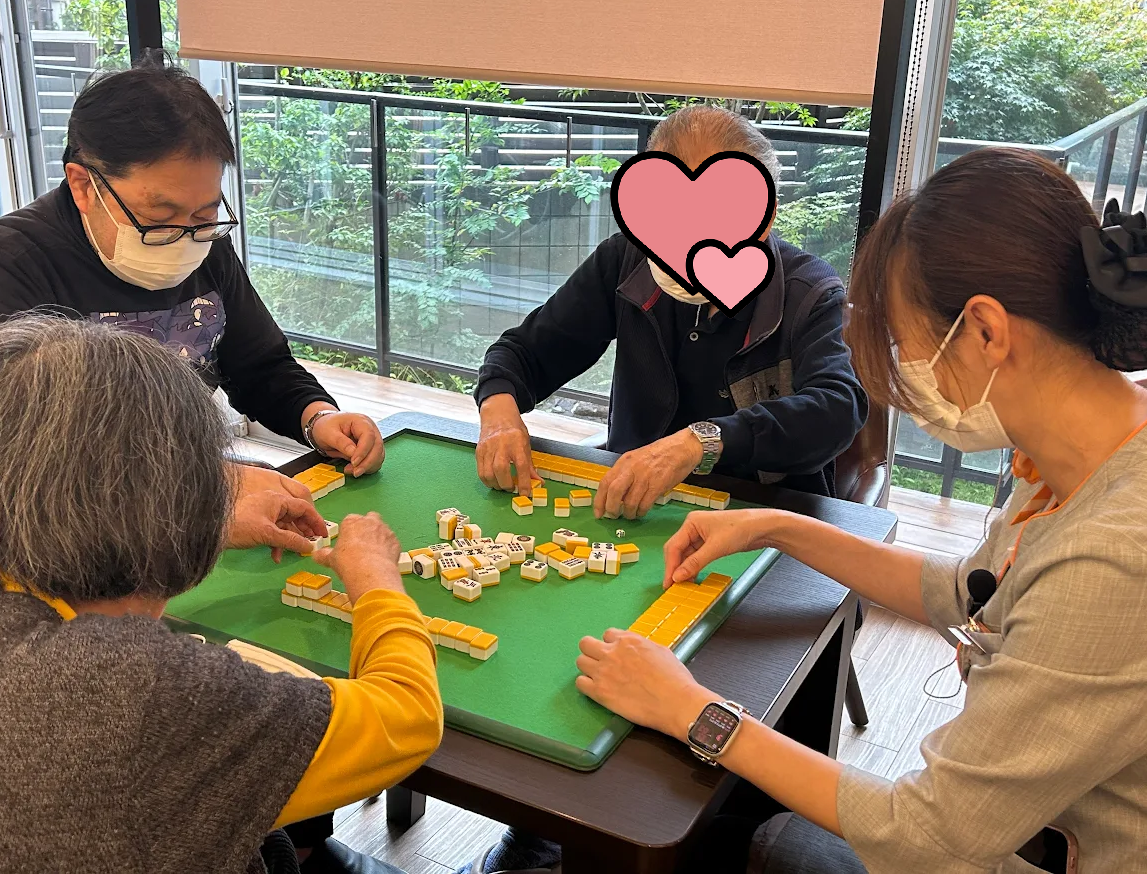 そして「麻雀」チームは、施設長とコンシェルジュも参戦‼二人とも初心者ですが^^;)ご入居者様に教えて頂きながら、頑張りました('∀'๑)ノ*。♪
