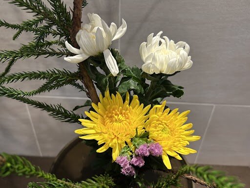 今回は菊が2色つかわれた生け花です。