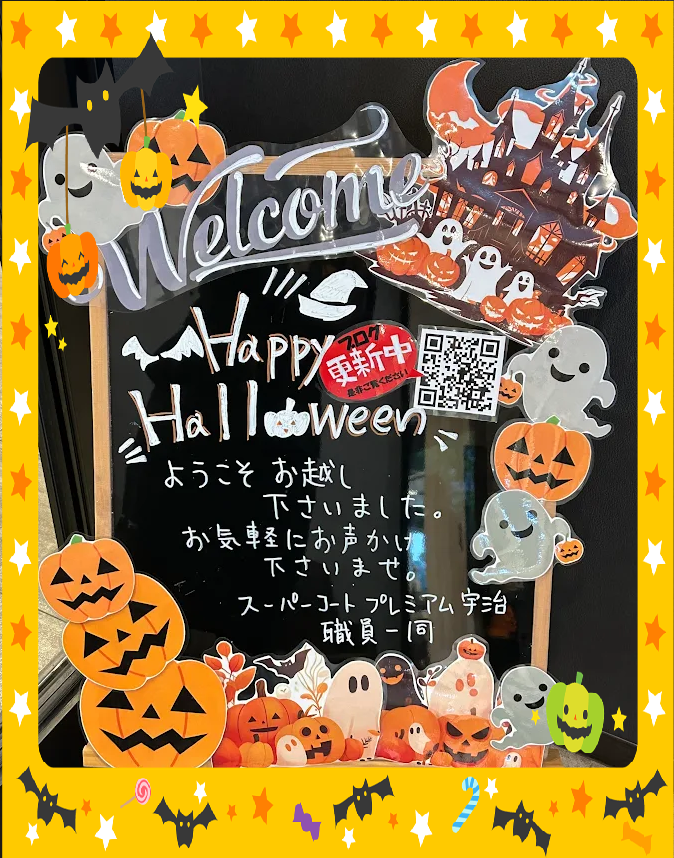 プレミアム宇治のウェルカムボードがハロウィンになりました!!