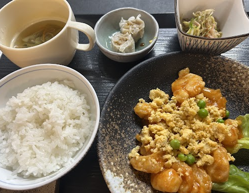海老のプリプリとチリソースが絶品です(๑´ڡ`๑) 海老料理は毎回大人気です‼