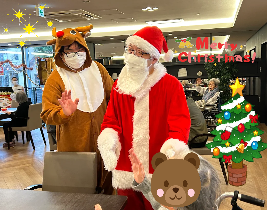今年はサンタクロースを看護師が、トナカイをケアワーカーにお願いしました♪