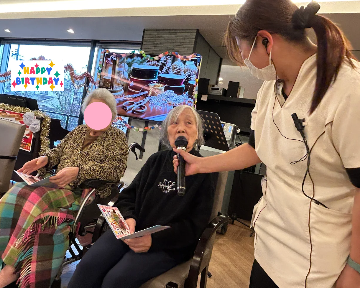 誕生日会に引き続き行われたクリスマス会には沢山のご入居者様が参加して下さり大いに盛り上がりました° ✧ (*´ `*) ✧ °