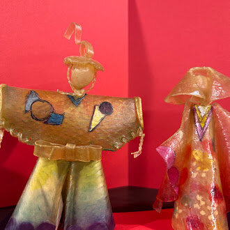 皮を湯につけて柔らかくし、型をとって染料で色付けし乾燥させたお雛様です。