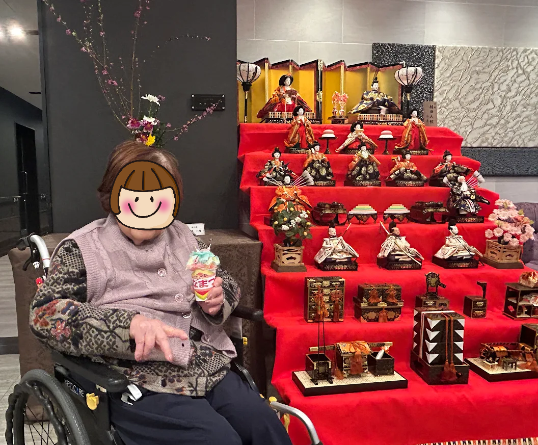 こちらは入居者様から寄贈していただいた立派なお雛様です。