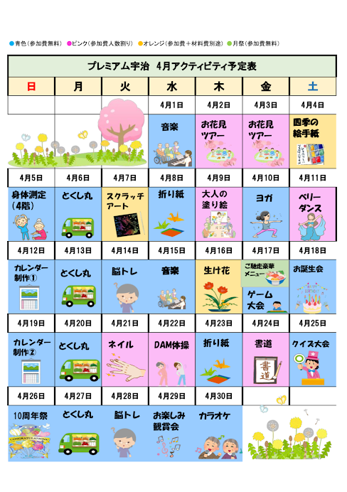 今回はプレミアム宇治、3月のアクティビティーカレンダーをご紹介いたします。