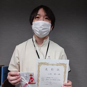 表彰されたのは 山本博一CW(ケアワーカー) 勤続10年 !!