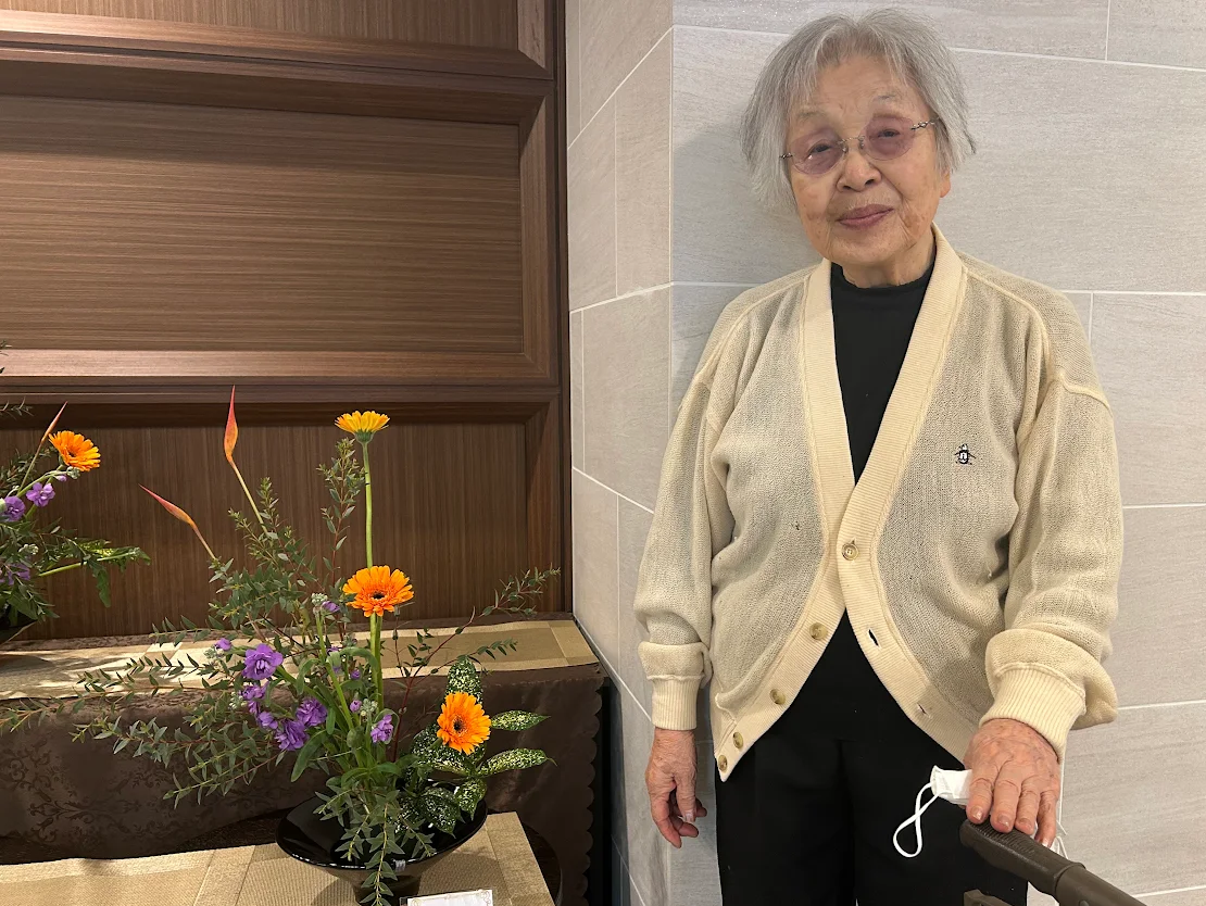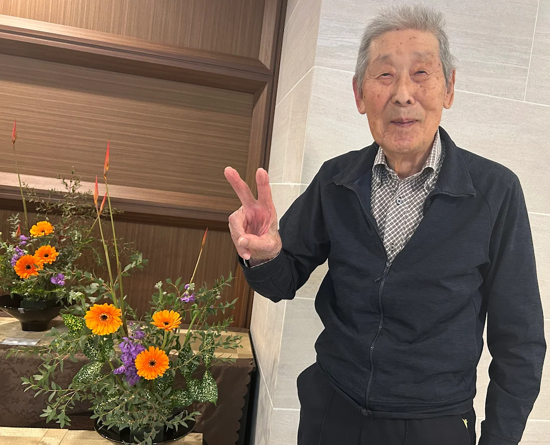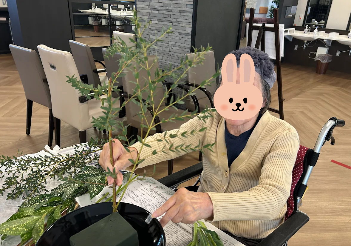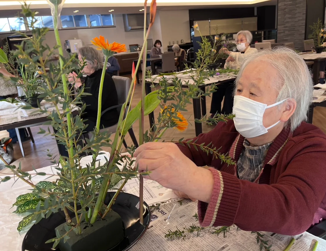 こちらは面会に来られた娘様とご一緒に生け花を楽しまれています(*^_^*)