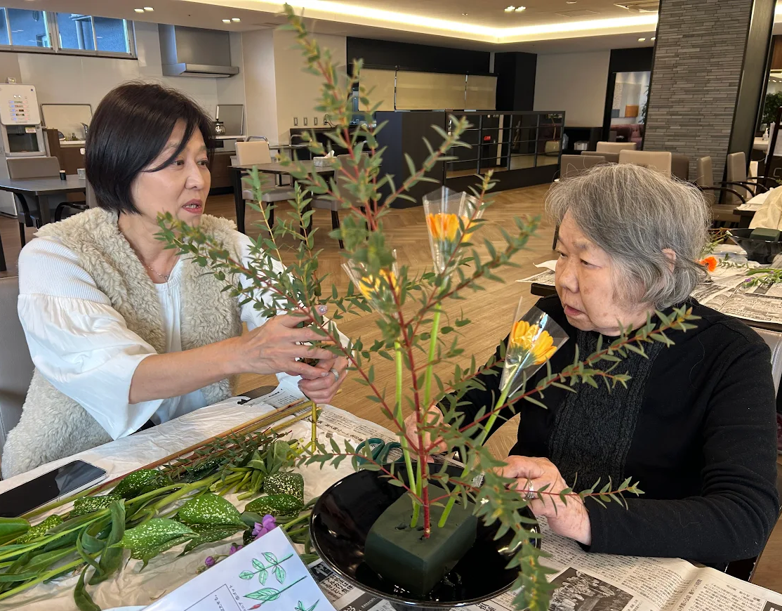 プレミアム宇治では、毎月講師の先生をお招きして生け花教室を開催しております。