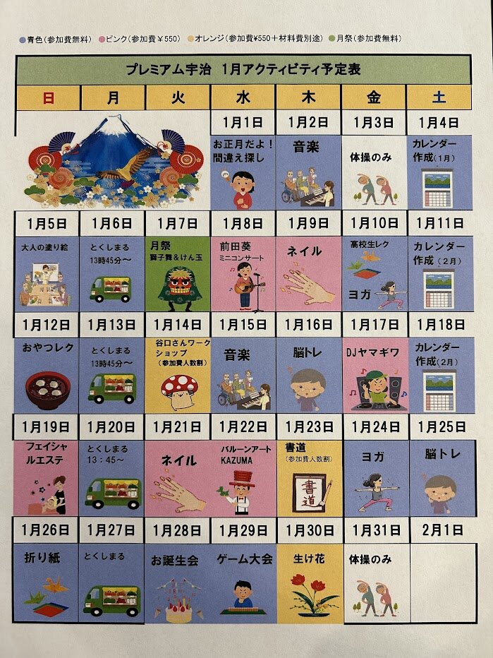 2025.1月のアクティビティーカレンダーを添付いたします。