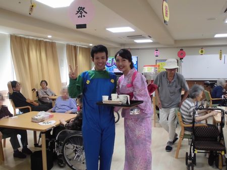 スタッフもこの日は浴衣やフラダンス、法被にルイージと思い思いの