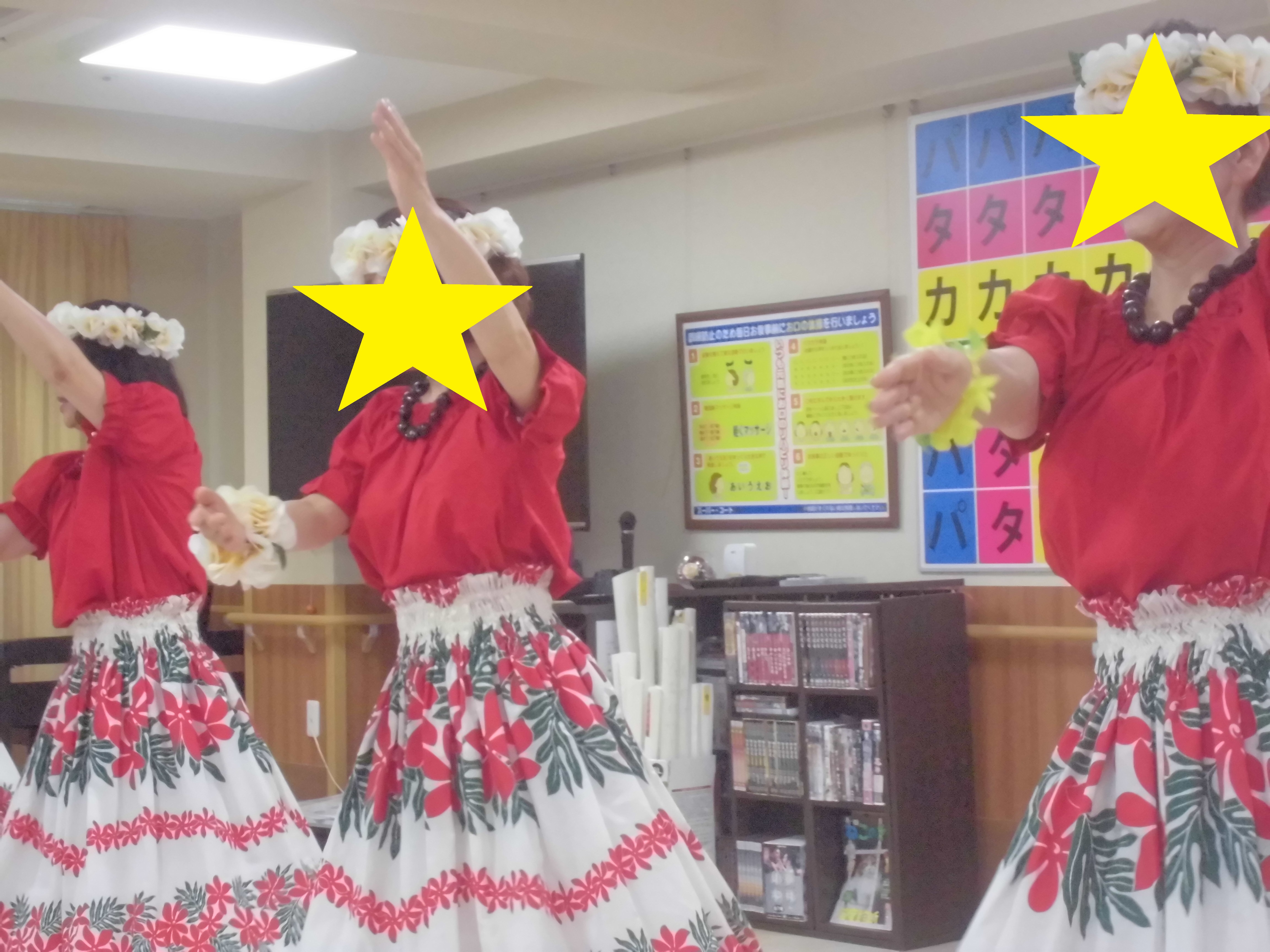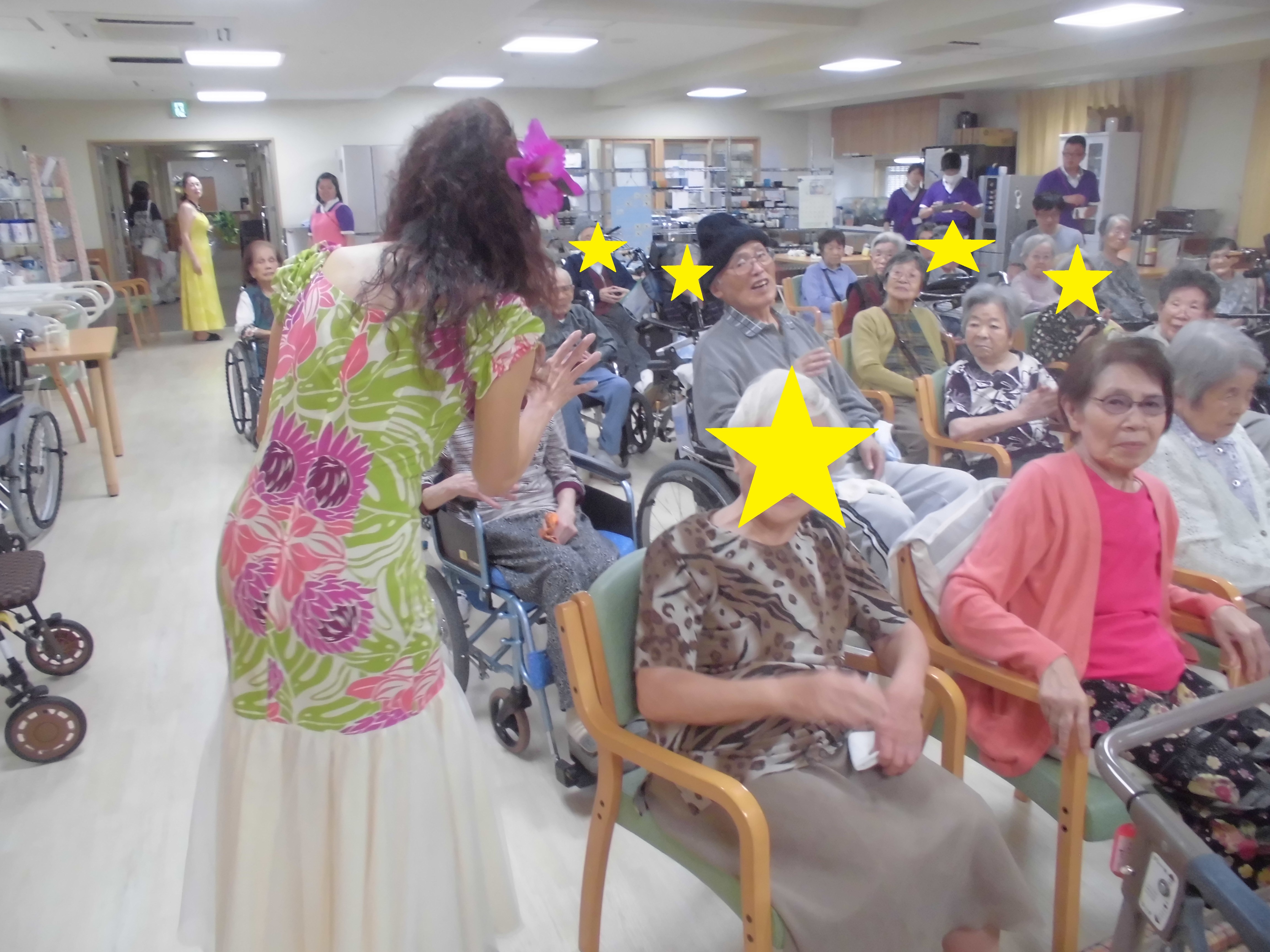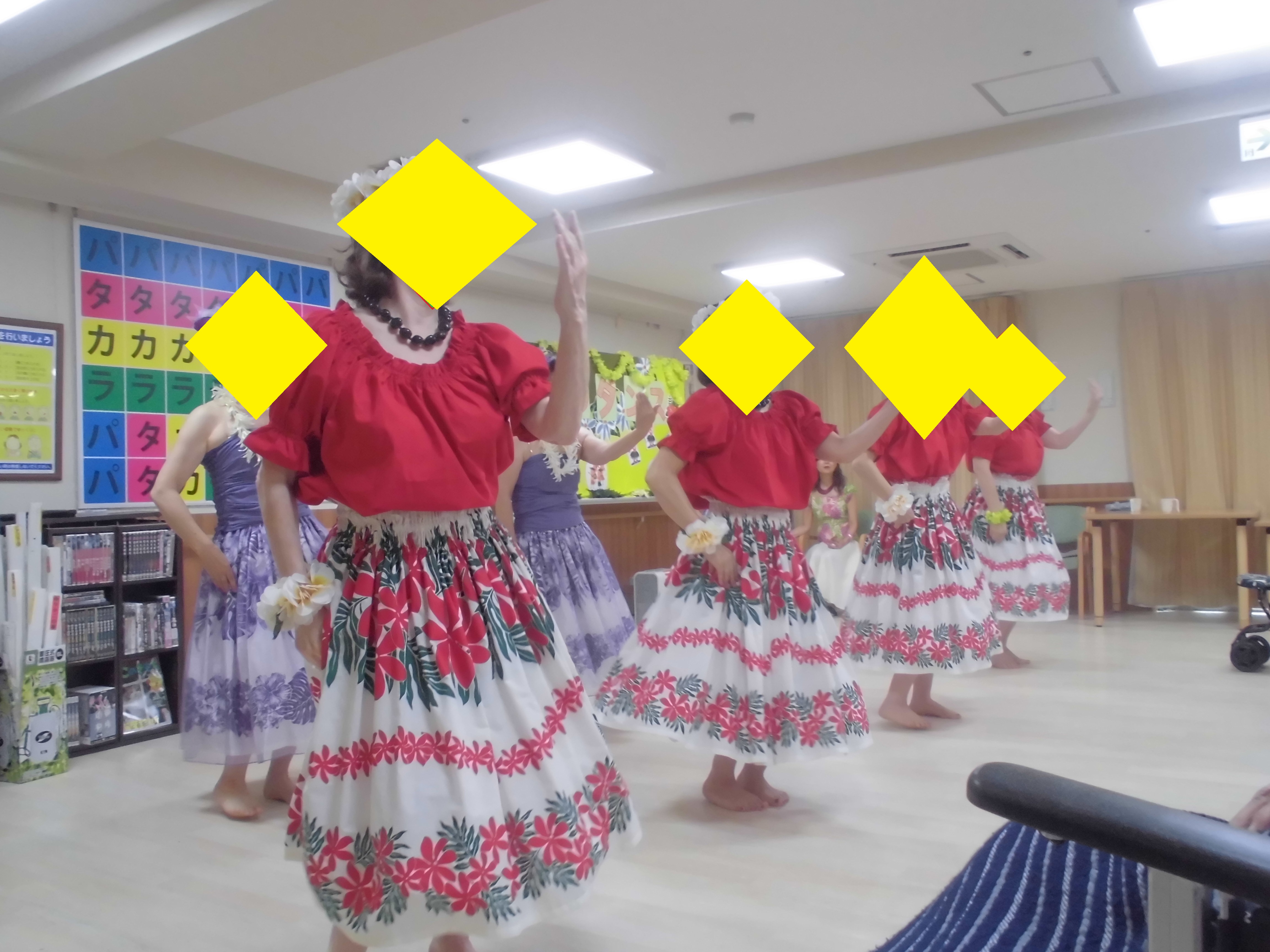ご入居者のご家族さんと教室の方々がボランティアでフラダンスをしてくださいました。