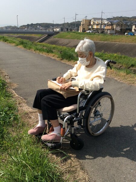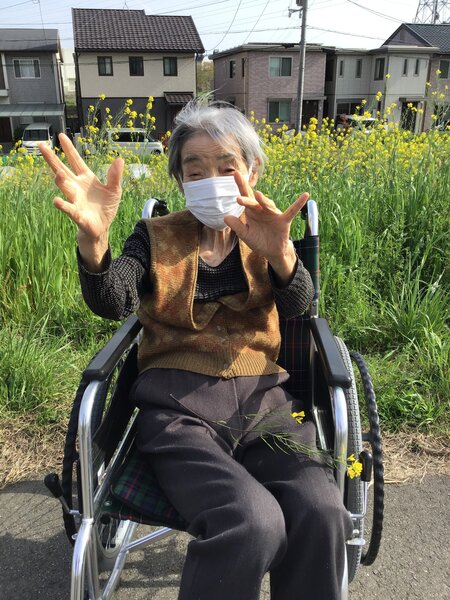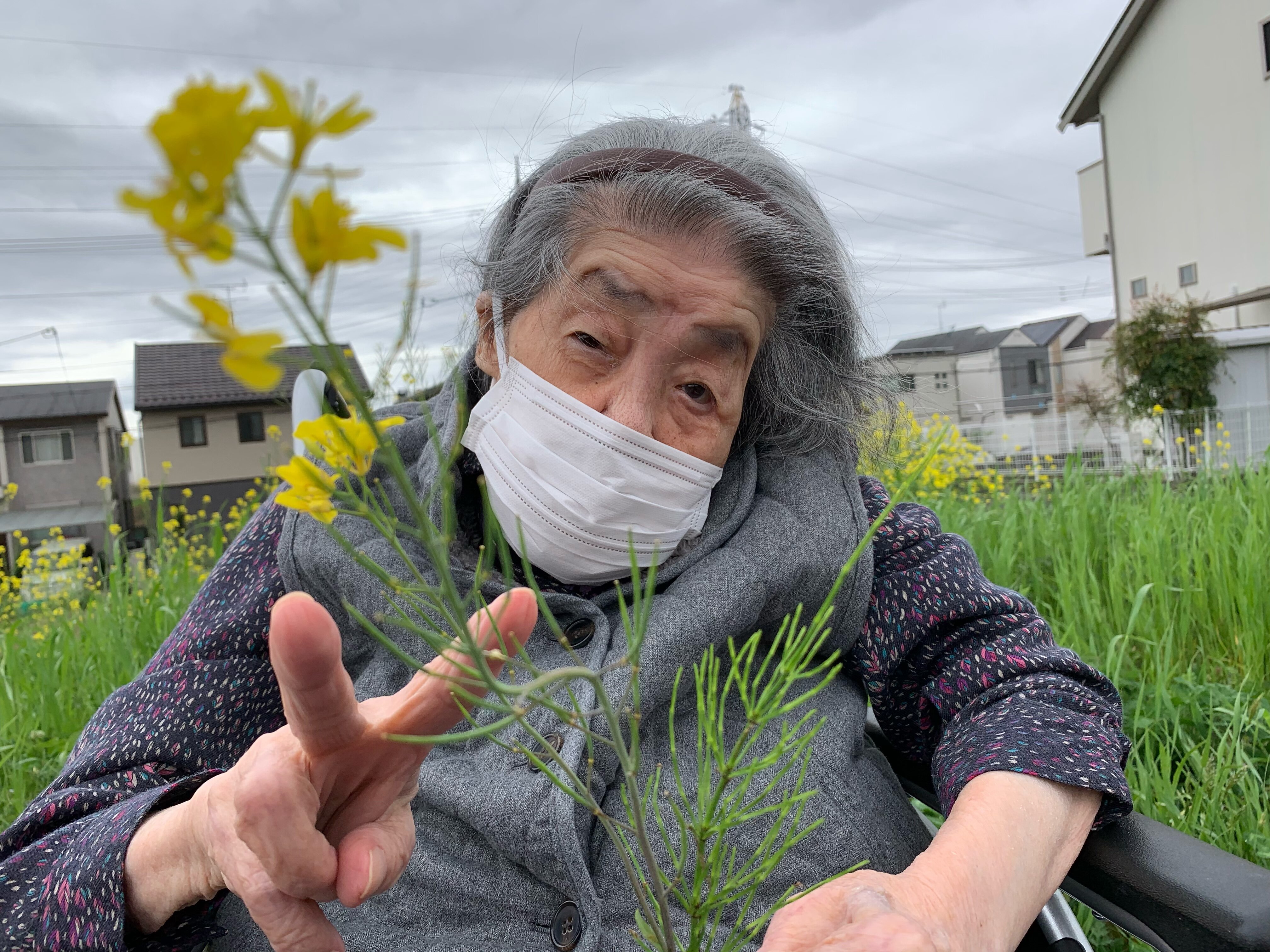 施設近くの川沿いに、菜の花が沢山咲いており、皆さんお花を手に取り笑顔になられていました(*'▽')