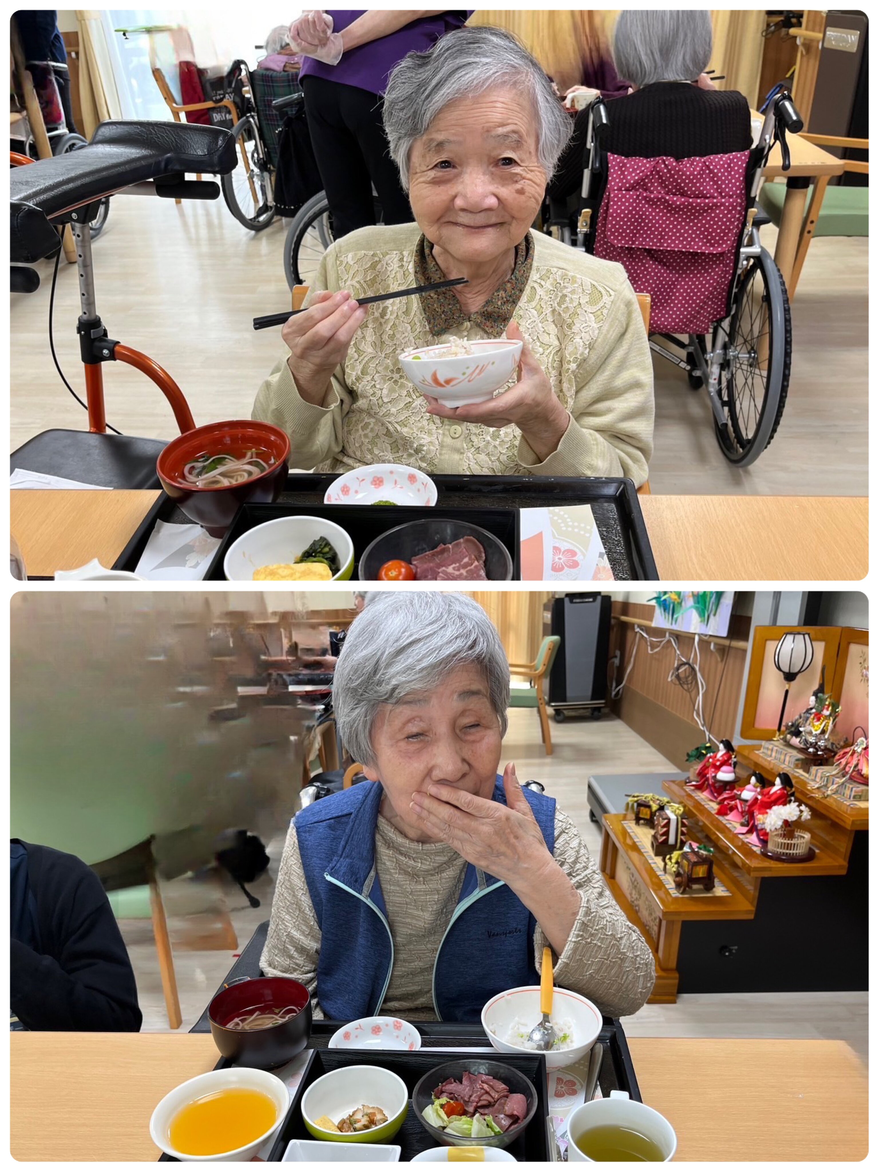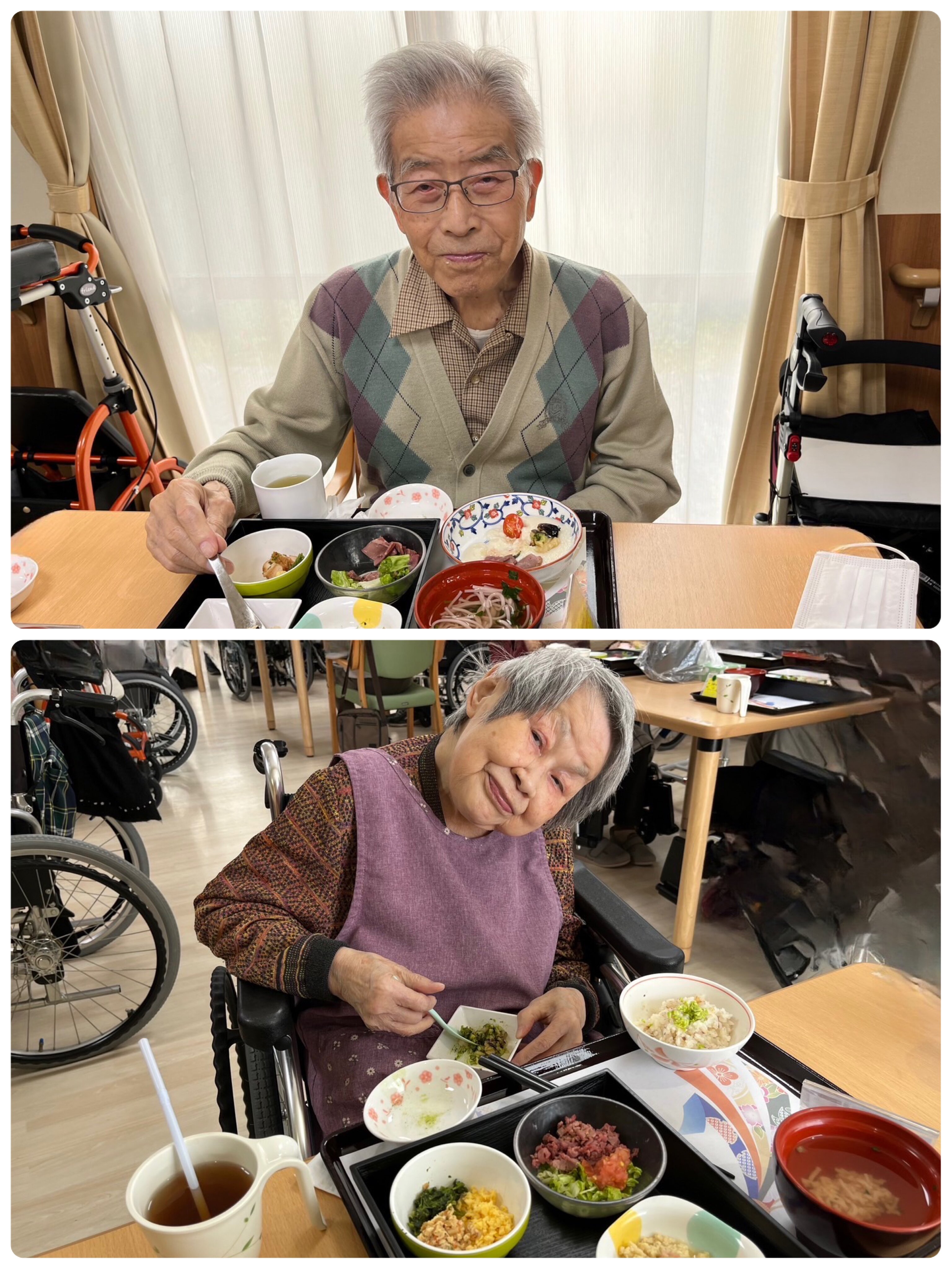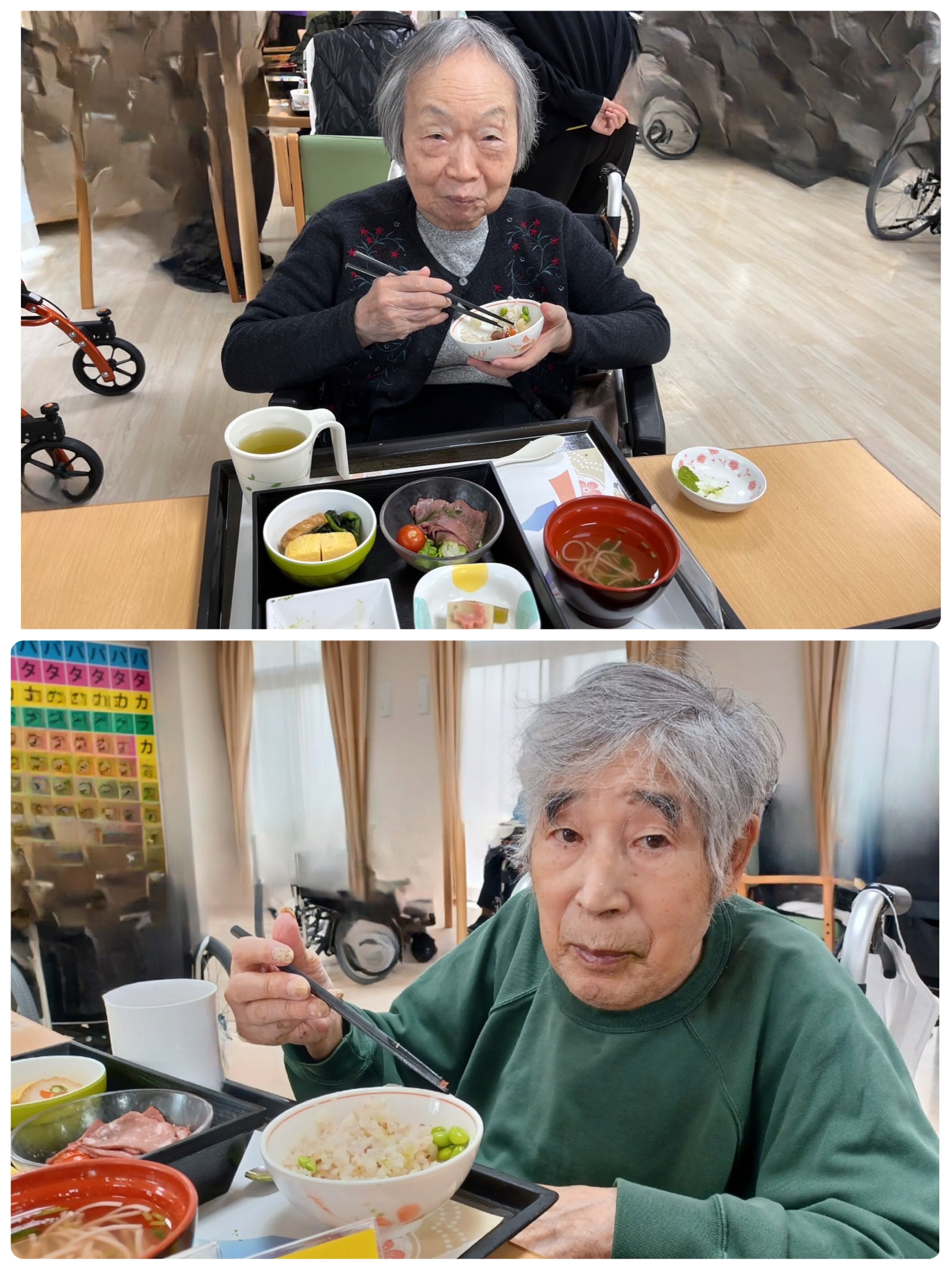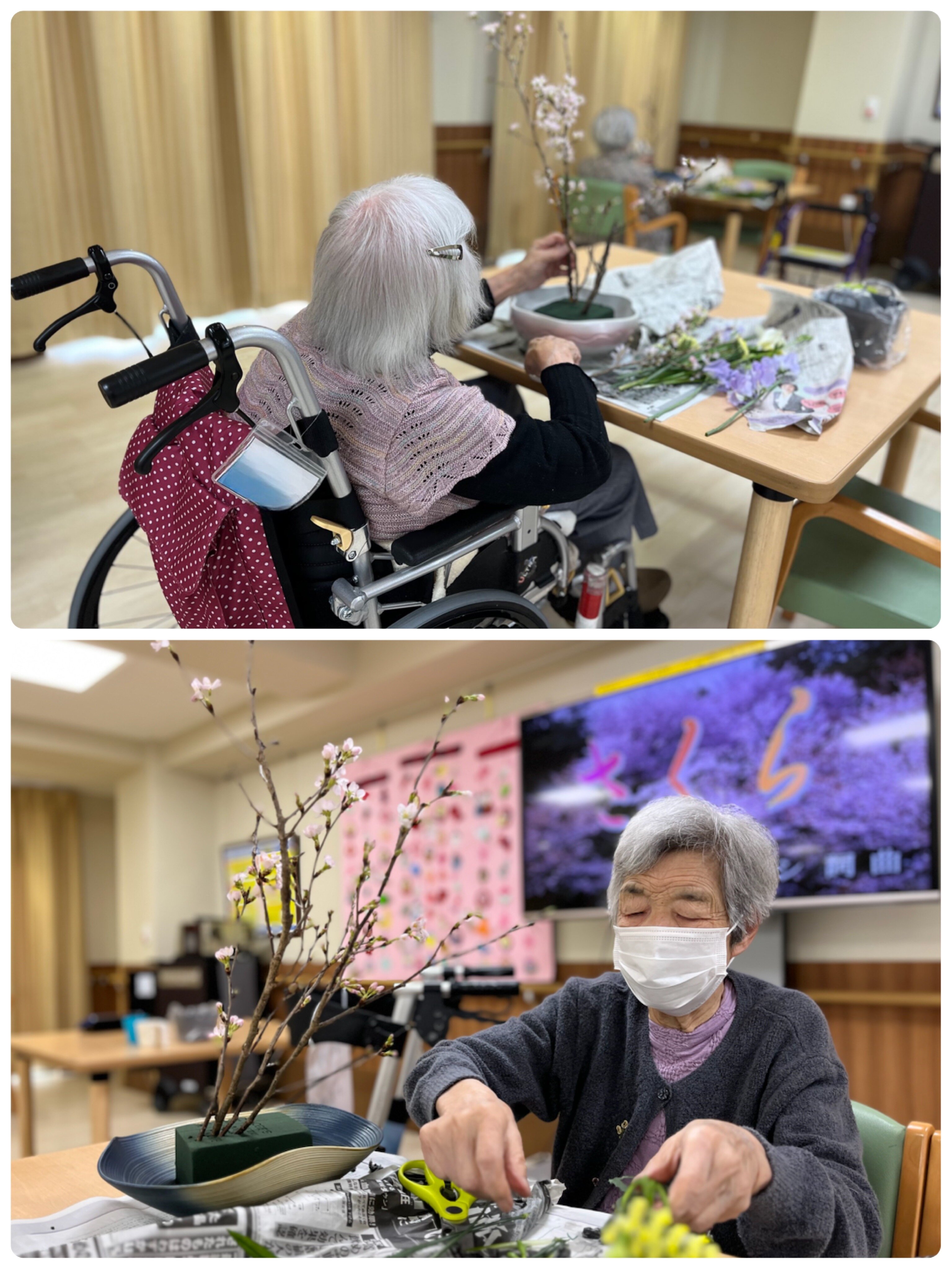 ご入居者の皆様は、「わぁ!桜やね!」「お花のいい匂いがする!」「色が綺麗やね。」と喜びのお声をいただきました。