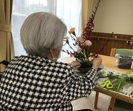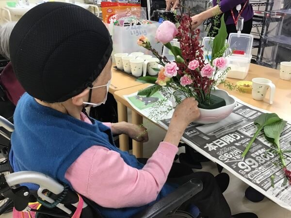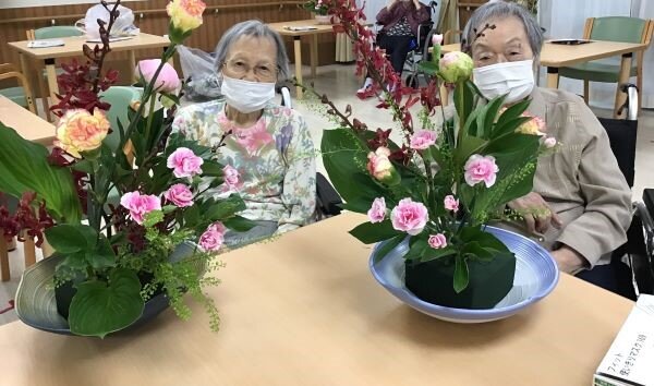 今月も、ご入居者の皆様から大好評を頂いている「生け花アクティビティ」を行いました。当日は、ほぼ全てのご入居者が参加され、ご入居者の皆様も【カーネーション】等を鑑賞し、「素敵なお花ですね」「やっぱり、生花はいいわ」とのお声を頂きました。