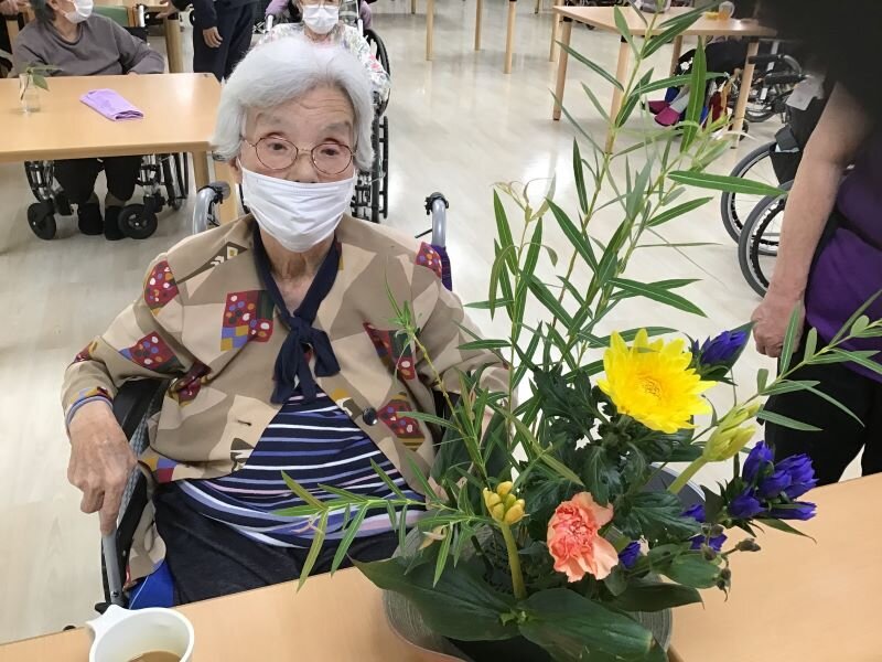 皆様、こんにちは。本日は、ほぼすべてのご入居者が参加れる【生け花】を行いました。ご入居者の皆様からも「生花に触れるだけで、心が豊かになります」「毎月、楽しみにしています」と嬉しいお声を頂いております。2週間に1度、開催しておりますので、当施設にお立ち寄りの際は、お気軽に鑑賞ください。