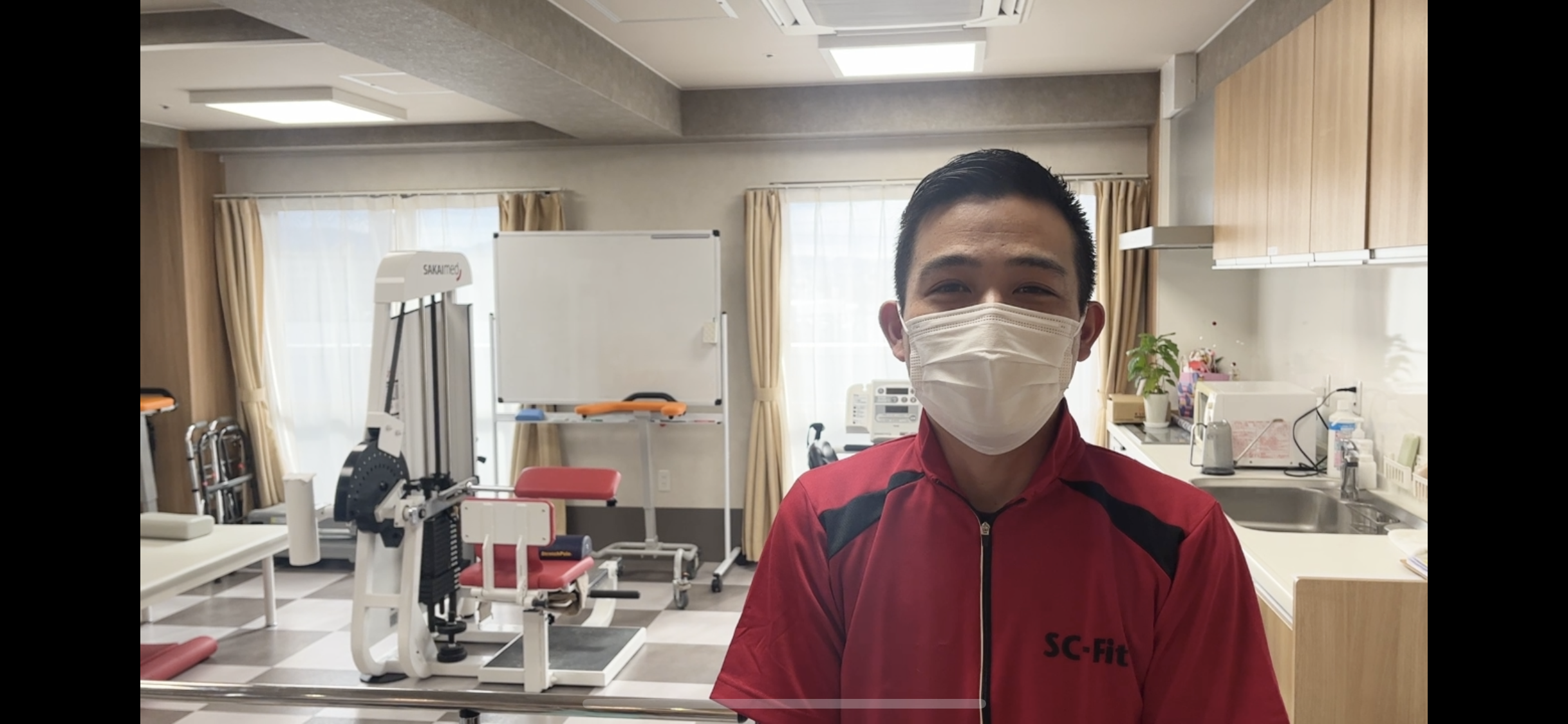 皆様、こんにちは。今日は【レーザー付き歩行器】をご紹介したいと思います。こちらの歩行器は、主にパーキンソン病等をお持ちのご入居者の歩行支援を行うために開発された歩行器で、通常の歩行器に加えて【レーザー】や【音声案内】などが出来る歩行器でございます。当施設では、「最後まで歩く」を合言葉に、リハビリ職員が様々な訓練や「福祉用具」を用いて、日ごろの訓練に取組んでおられます。今後も、リハビリ室からの情報を発信したいと思いますので、ご期待くださいませ。