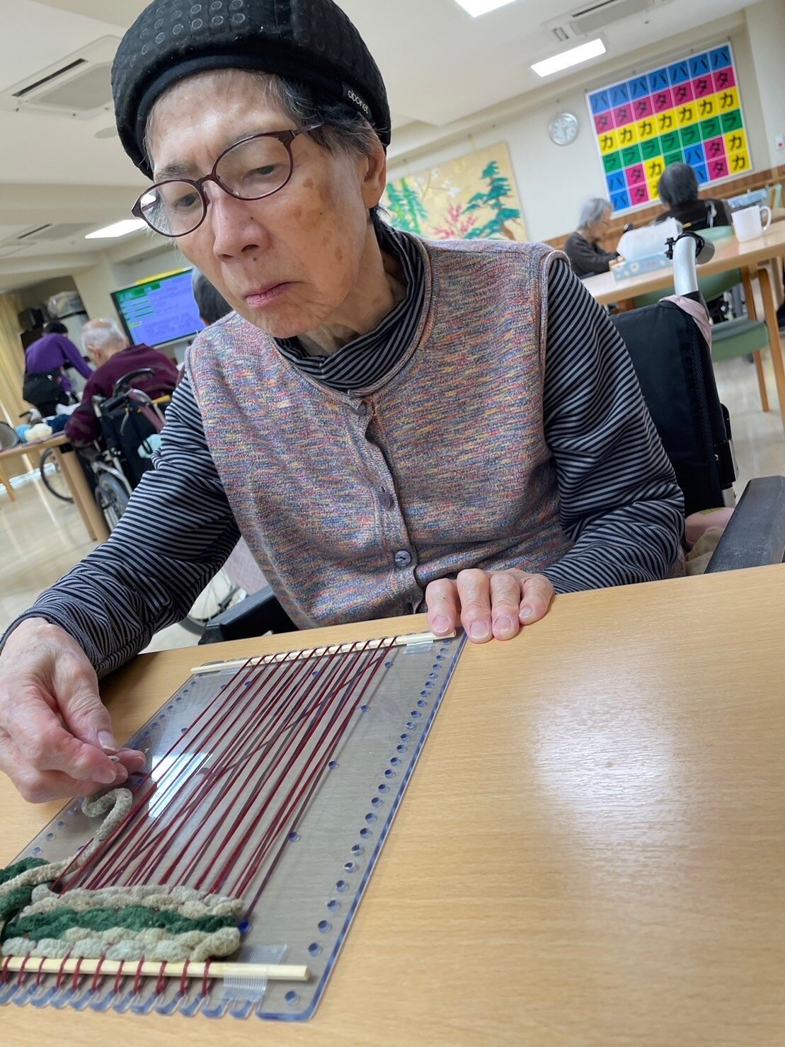 本日は【編み物】アクティビティーを開催しました。当施設は、年齢的にも「幼少期に編み物」をされた方が多く、今回も20名以上のご入居者の方が参加されました。ご入居者の皆様からも「毎月、楽しんでいます」「今月の作品は、何を作ろうかかな」と嬉しいお声を頂いております。次回もお楽しみに。