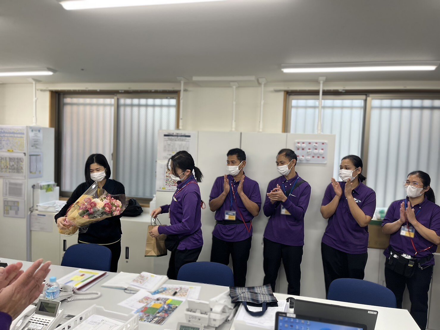 皆様、こんにちは。この度、通算4年に渡りスーパー・コート京・六地蔵を支えてくれていたY主任が、スーパー・コート東住吉2号館に【異動】となり【送り出し会】を開催しました。今まで、職員への介護技術の訓練&評価、面談、ご家族対応等を一手に引き受けて、安定した施設運営に貢献して頂きました。これからは、新天地となるスーパー・コート東住吉2号館に異動されますが、頑張ってください。