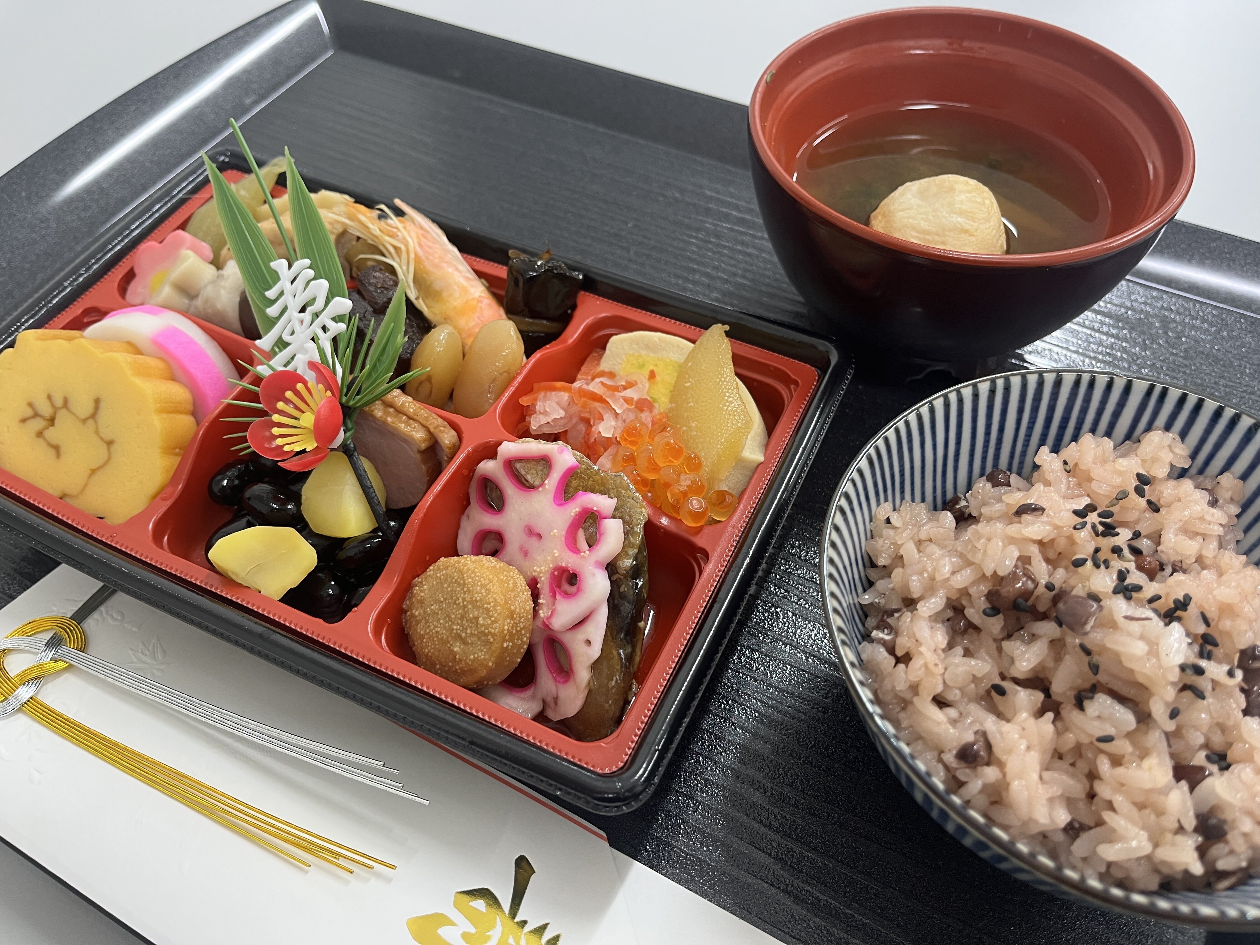 皆様、新年あけましておめでとうございます。今年もどうぞよろしくお願いします。本日の昼食は「おせち」が提供され、ご入居者の皆様からも「お正月気分になりました」「毎年、美味しいおせちを楽しみしています」と嬉しいお声を頂きました。今年度も「安全・清潔・イキイキ」が提供できるように支援をおこないと思います。宜しくお願い致します。