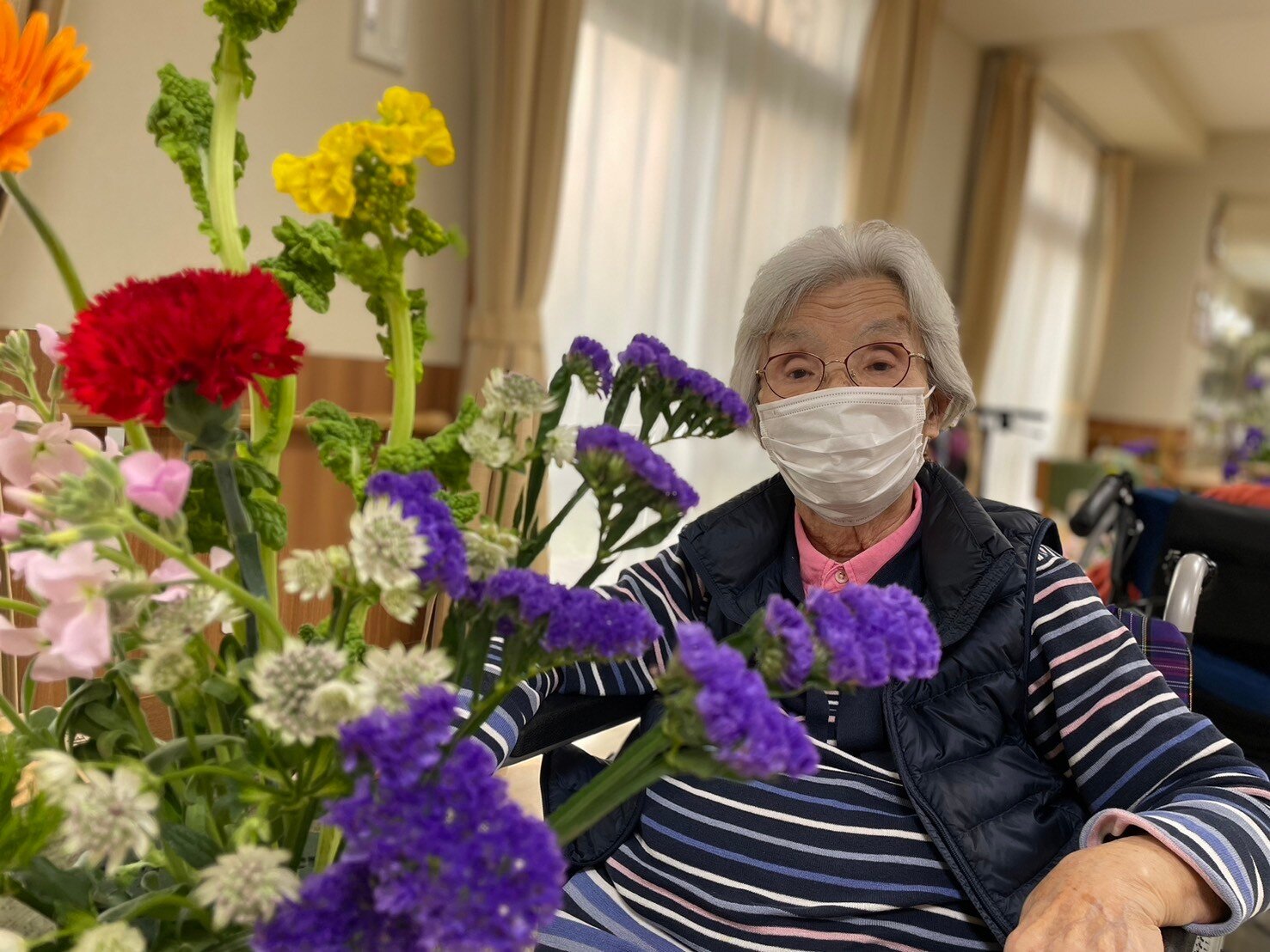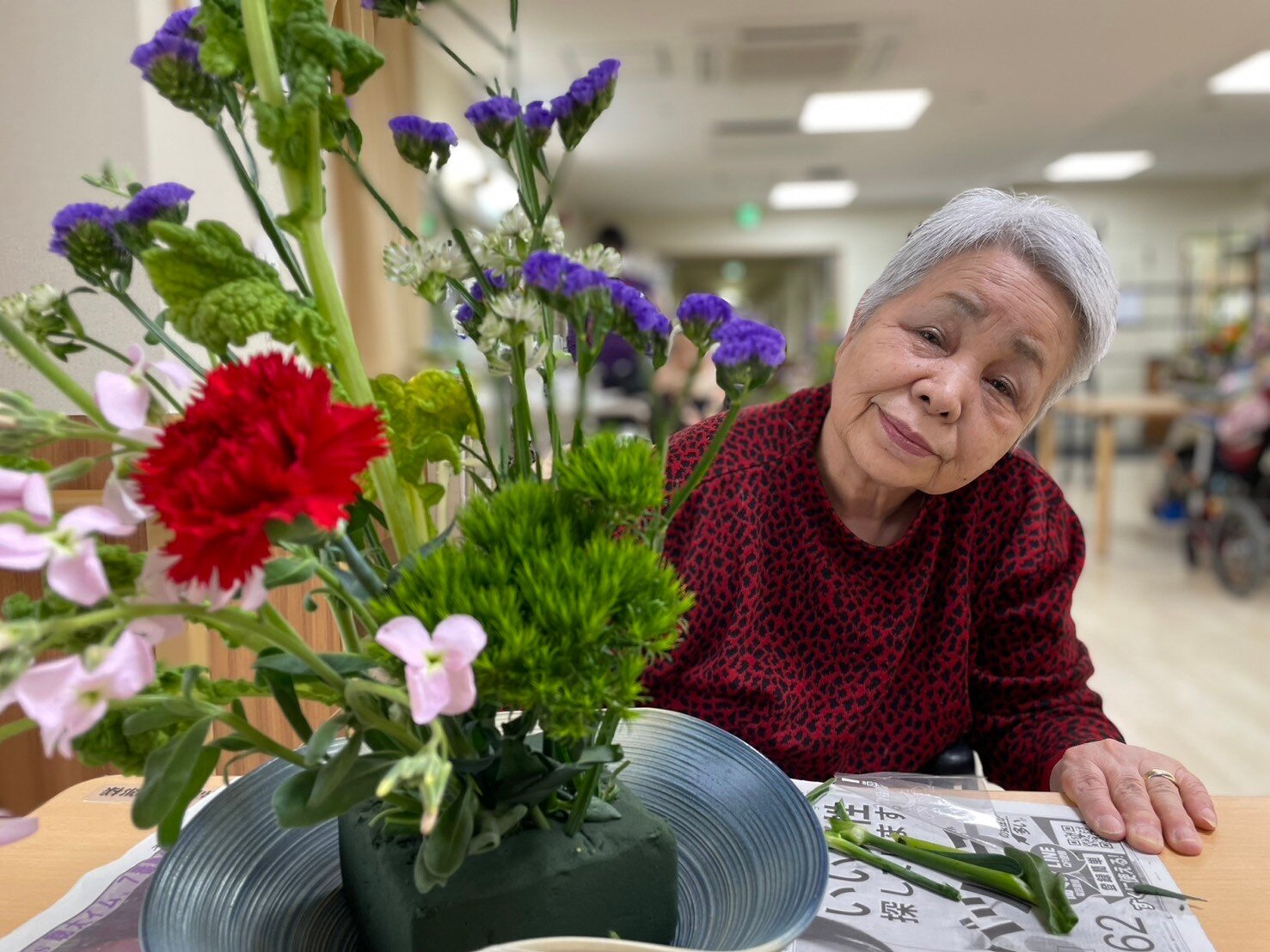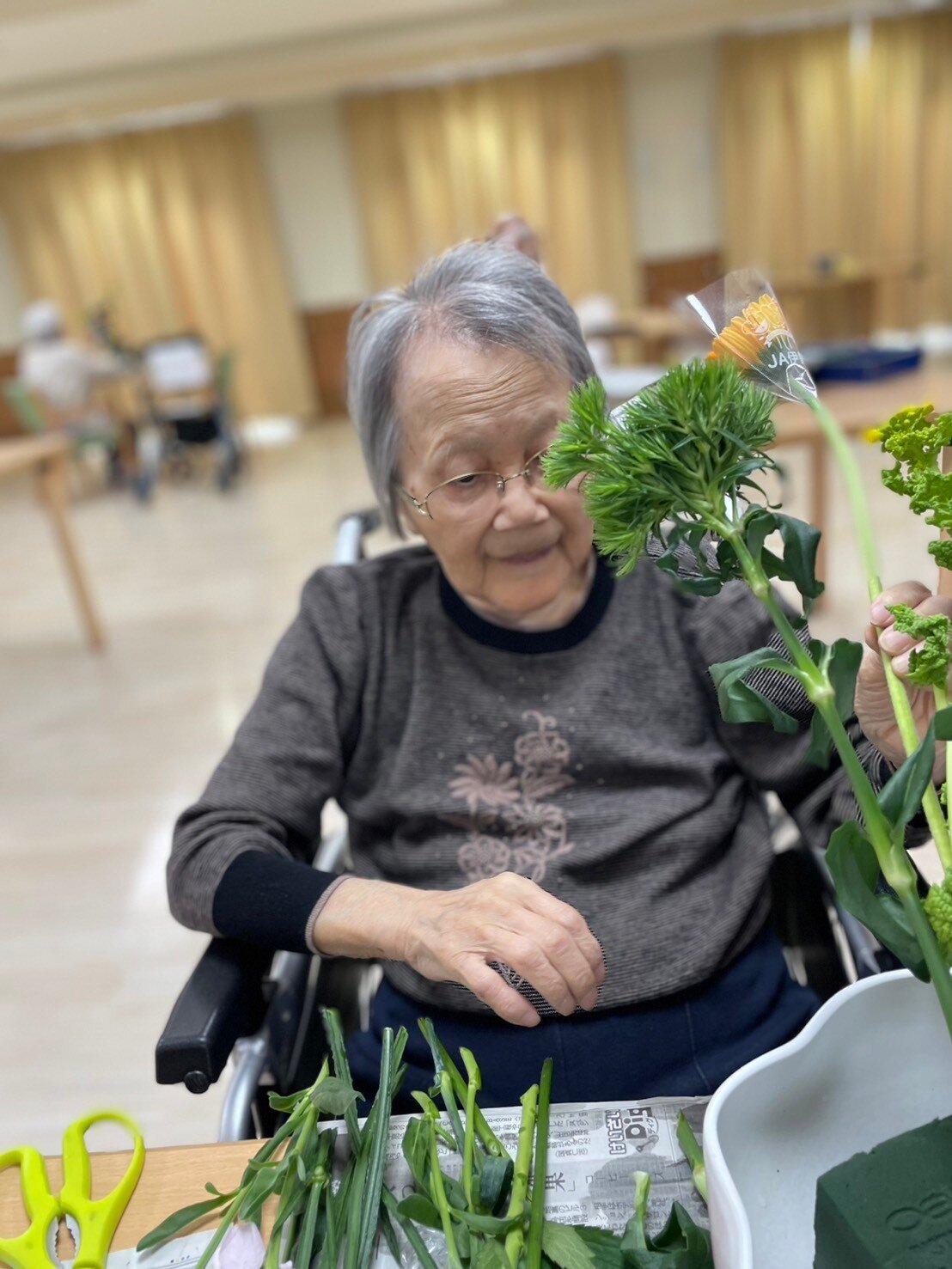 皆さま、こんにちは。今日は、先日、開催致しました生け花の様子をお伝えします。当日は、ほぼ全てのご入居者様が参加され、季節の花「菜の花」などに触れながら、生け花を楽しまれていました。当施設では、毎日「レクレーション」を開催し、「イキイキとした生活」を送れるように支援を行っておりますので、ご見学の際はぜひ、ご覧くださいませ。