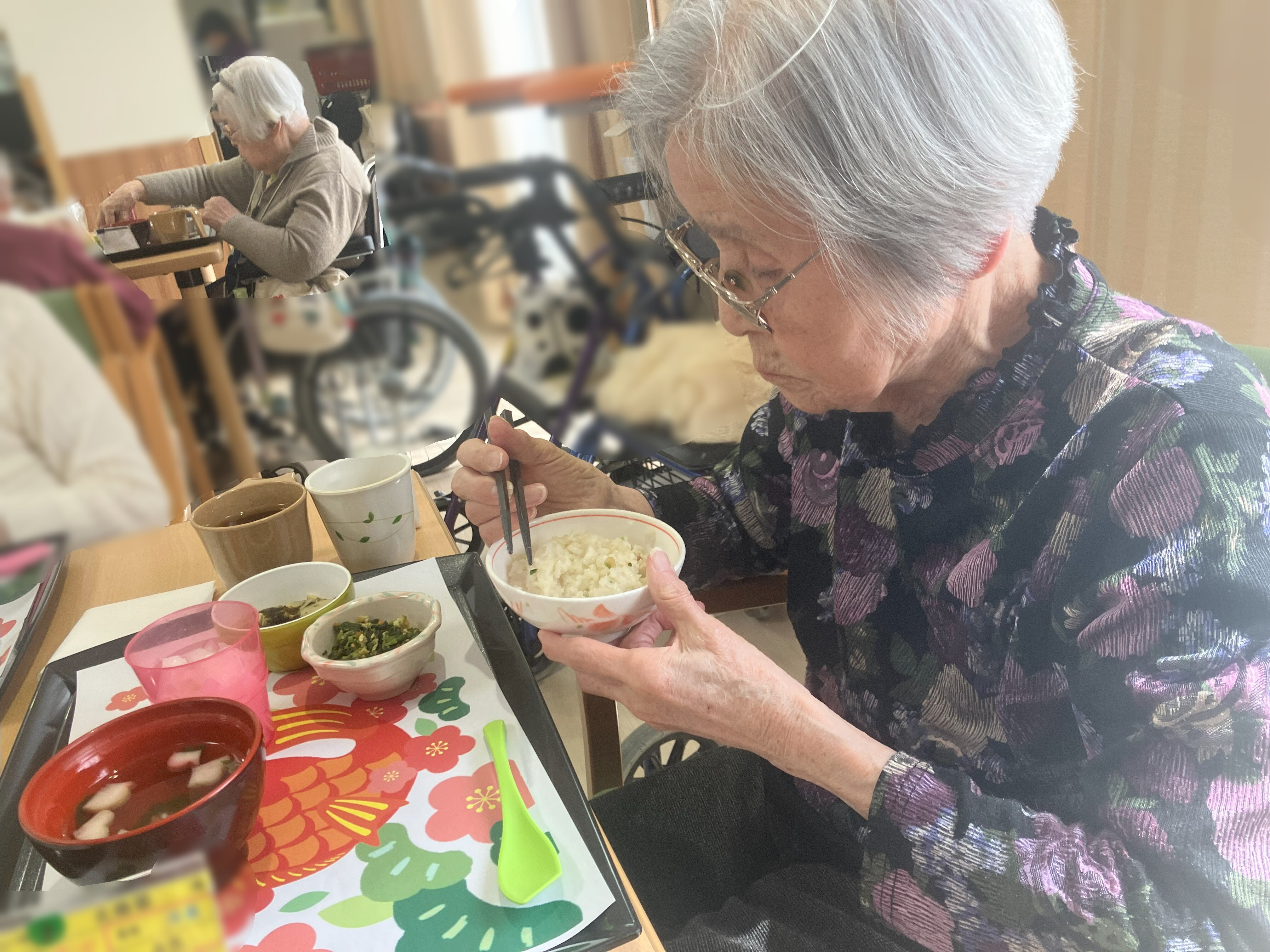 皆さま、こんにちは。今日のお昼は【お刺身 第二弾‼鯛のお造り&鯛めし】でした。ご入居の皆様からも「連日、ご馳走ばかりで、とても嬉しいです」「刺身は、美味しい」「これからも、宜しくね」といったうれしいお声を頂いております。これからも、皆様に喜んでいただけるように頑張りたいと思いますので、引き続き、ご期待ください。
