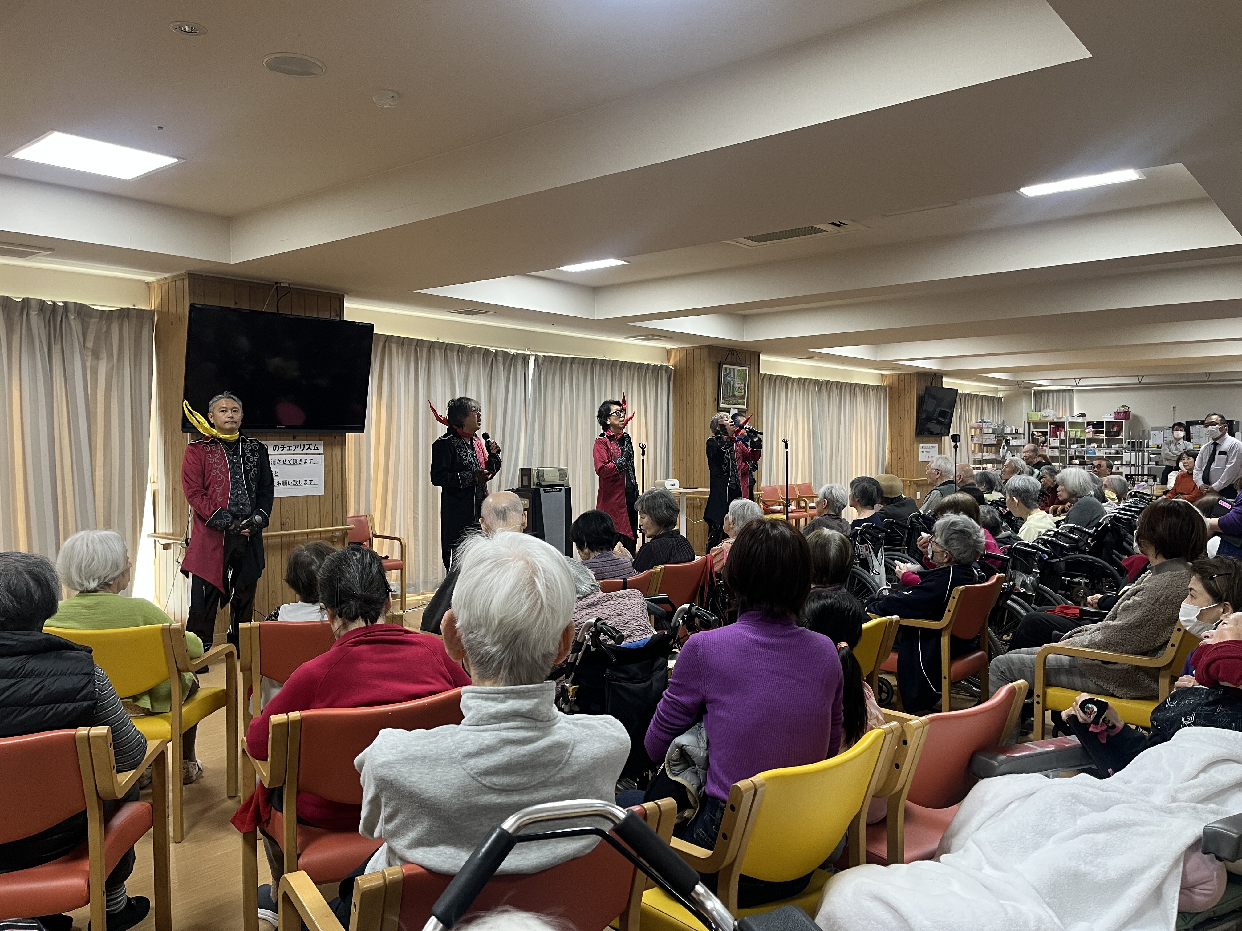 皆さま、こんにちは。本日は、先日、開催致しました【ベリーダンス】の様子をお伝えいたします。当日は、ダンサー2名が来訪され、素敵なベリーダンスを披露して頂きました。ご入居の皆様からも「素敵なダンスでした」「また見たいです」といった嬉しいお声を頂いております。昨年に続き今年も、ご来訪いただき、大好評のうちに終える事が出来ました。次回も、お楽しみに。
