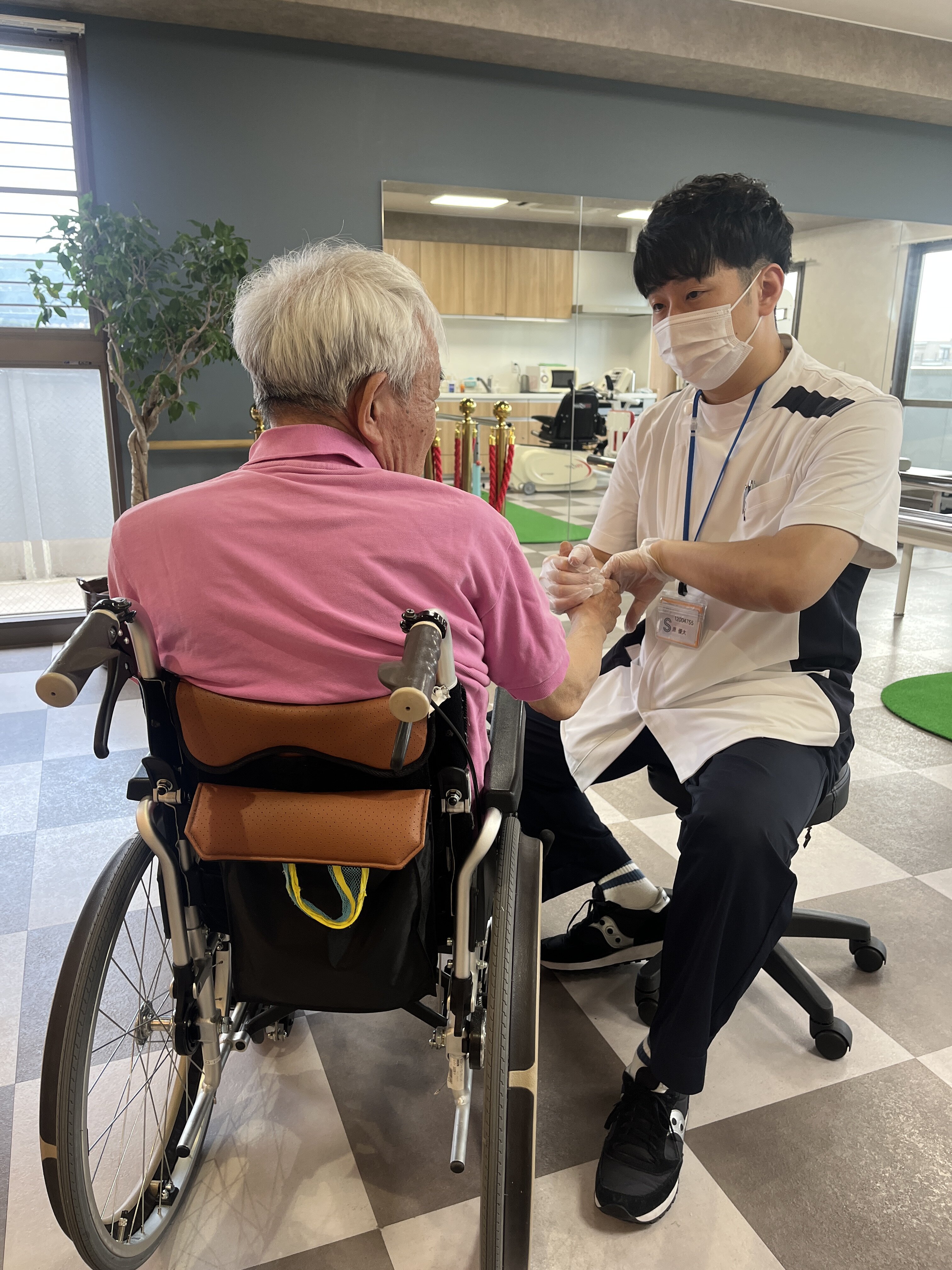 昼前に、4階のリハビリ室を覗くと、ご入居者様と理学療法士の先生が元気にリハビリに取組まれていました。本日は、天気もいいので、午後から「山科川の散歩」も行くそうです。楽しみですね。次回もお楽しみに。