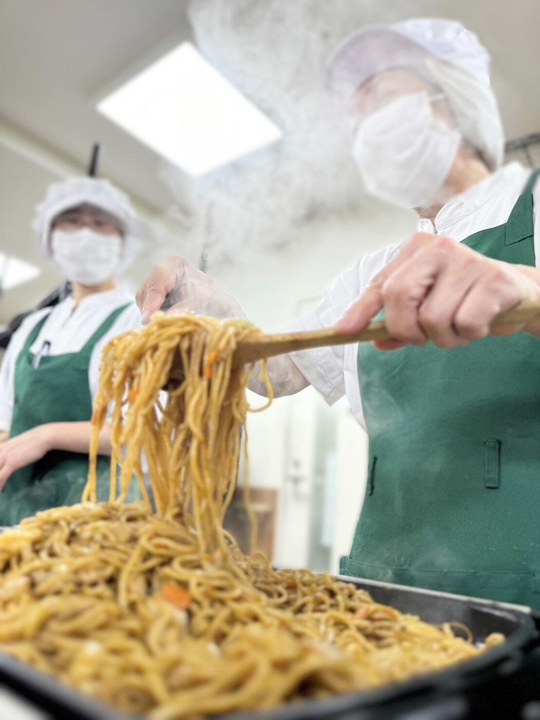 皆様、こんにちは。本日は、先日、開催致しました【面前提供 焼きそば】のご様子をお伝えいたします。毎月、面前提供を開催はしていますが、今月は「少しでも梅雨のじめじめした気分を吹き飛ばそうと、一足早く夏祭りメニュー」の焼きそばをご用意させて頂きました。ご入居者の皆様からも「ソースの匂いが、食欲をそそります」「とても、美味しかったです」と嬉しいお声を頂きました。来月も【面前提供】を開催予定ですので、ご期待ください。