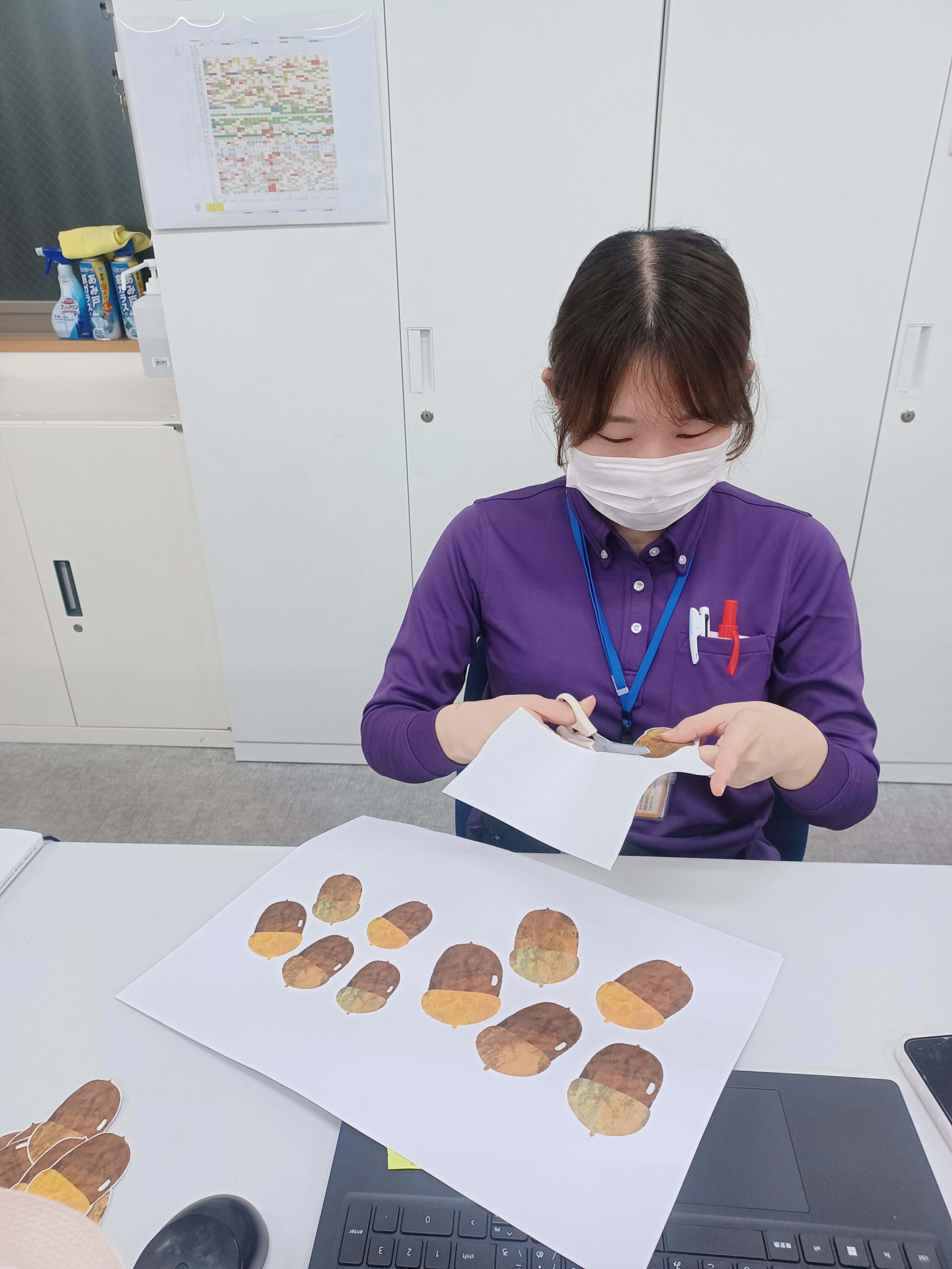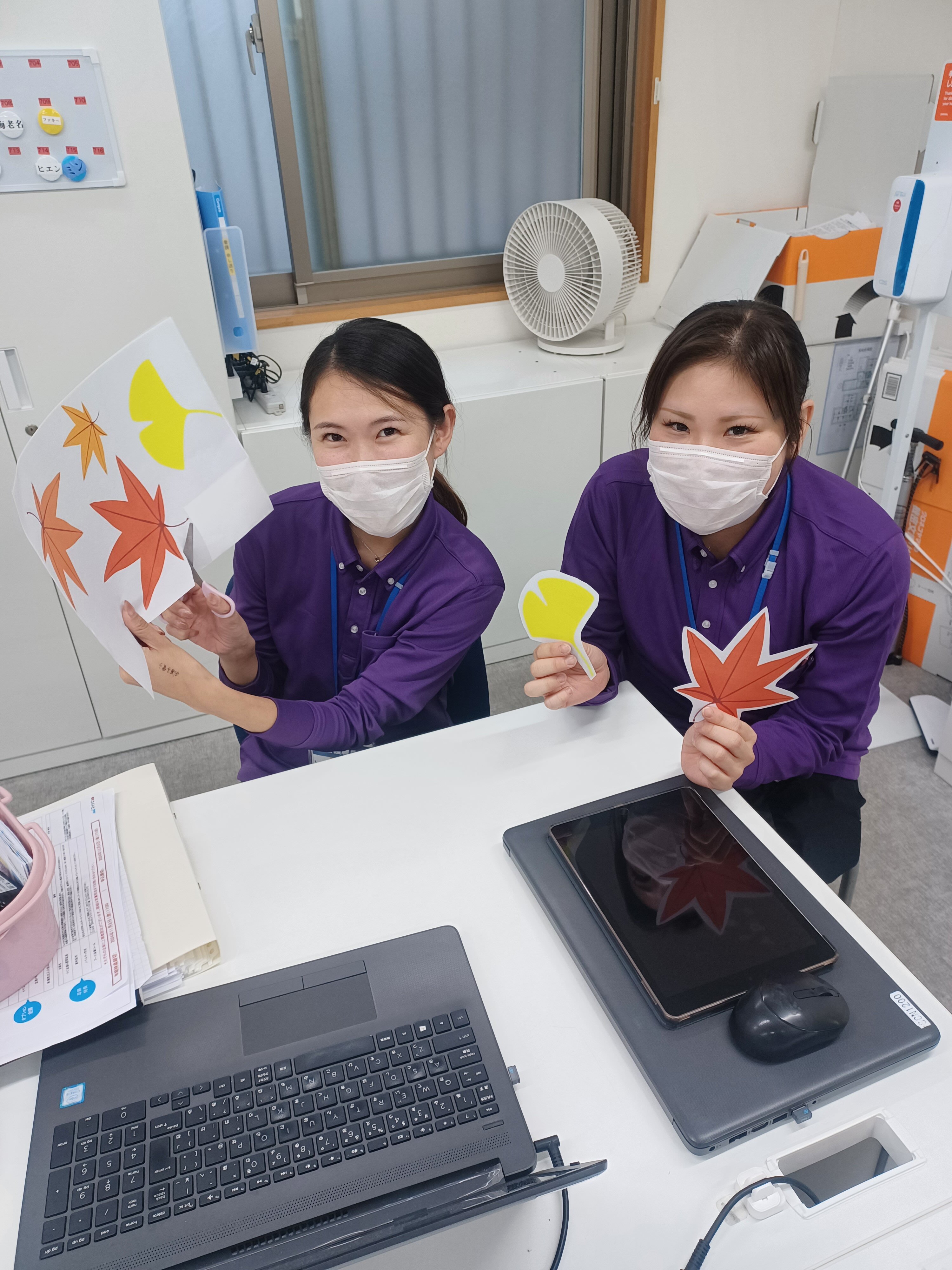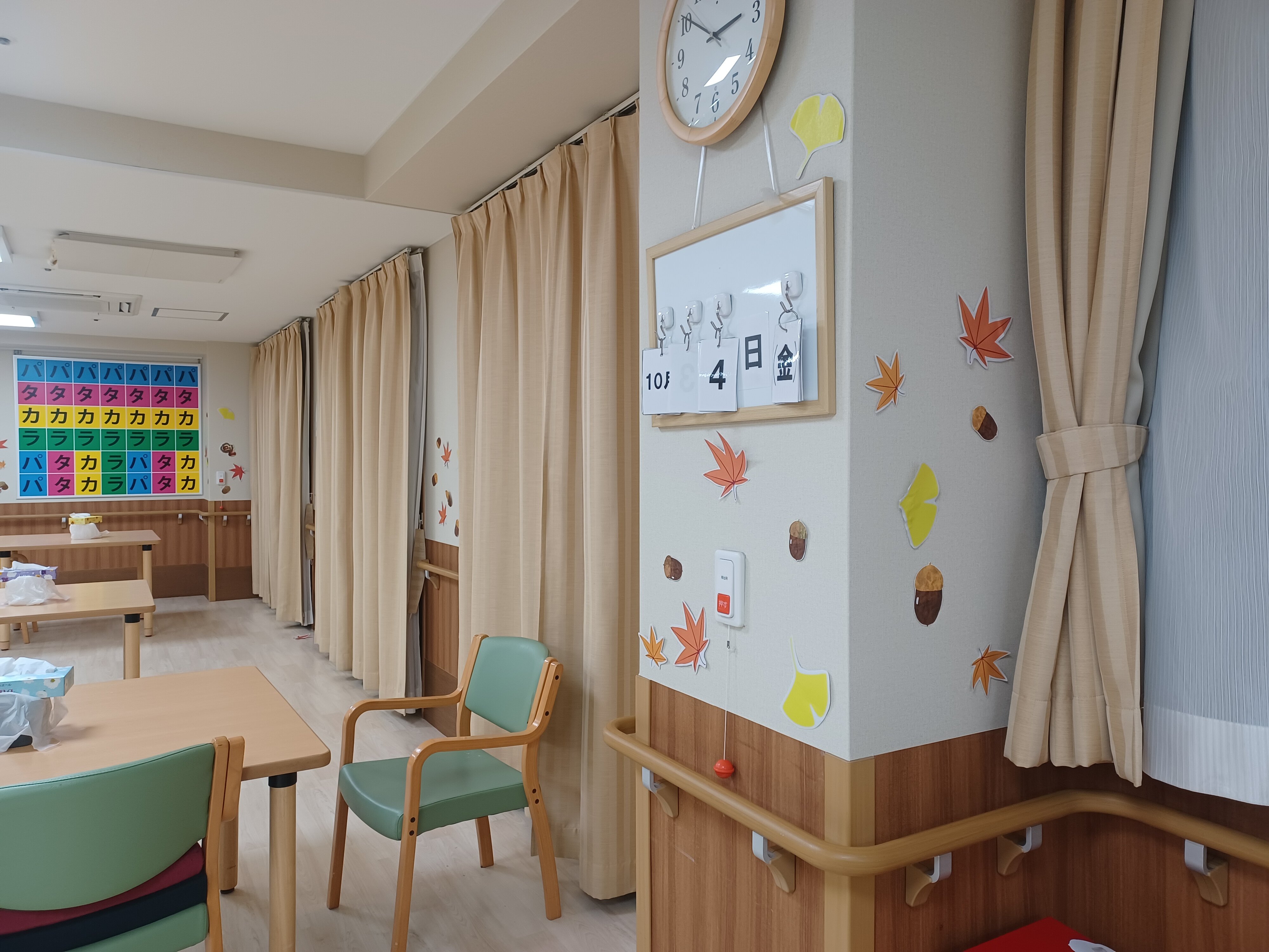 もみじの葉やどんぐりなどを食堂に飾り付けました!!