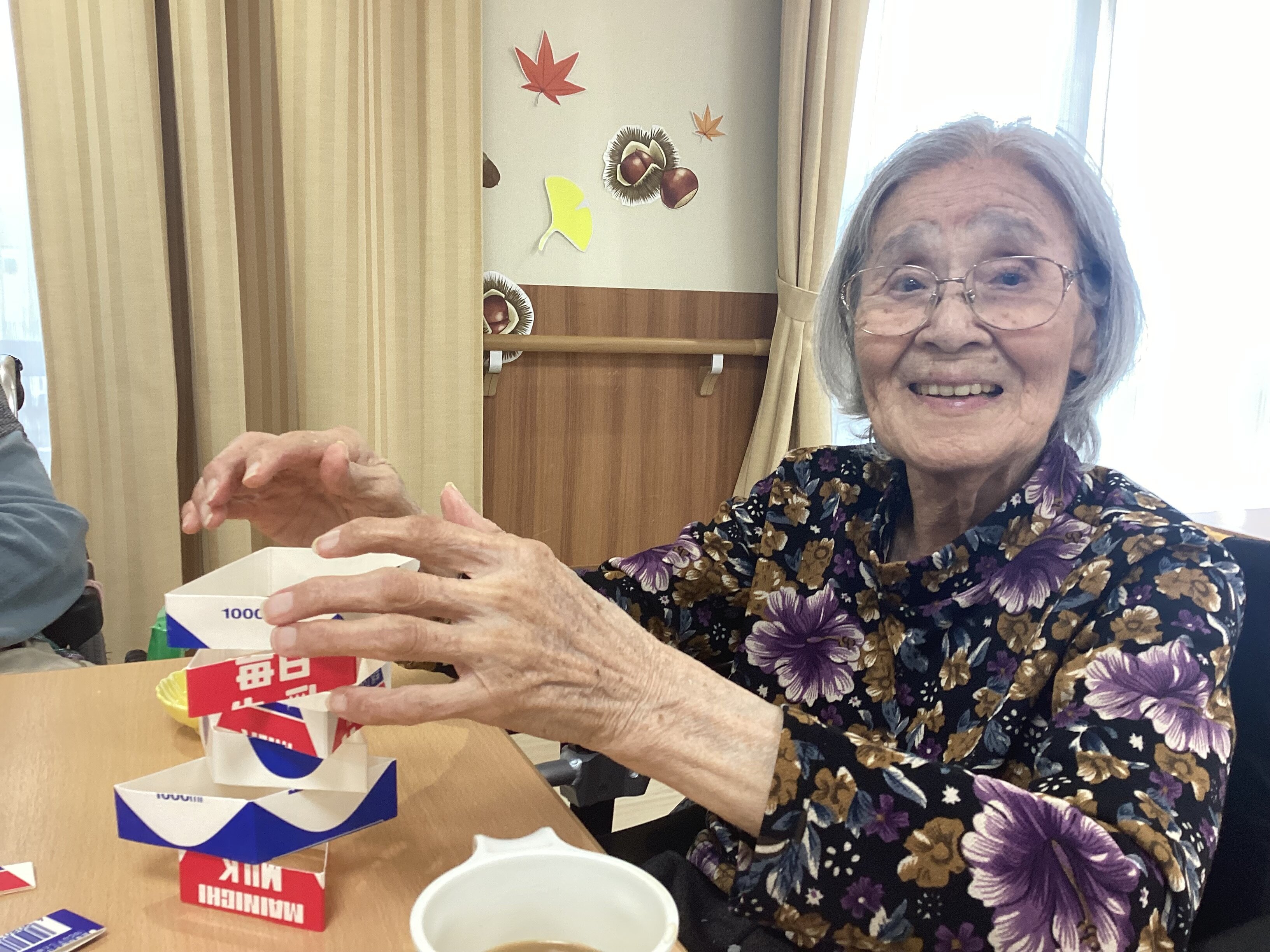 紅葉や栗拾いなど秋の思い出を思いだしていただいたり、秋を少しでも感じていただこうという思いで