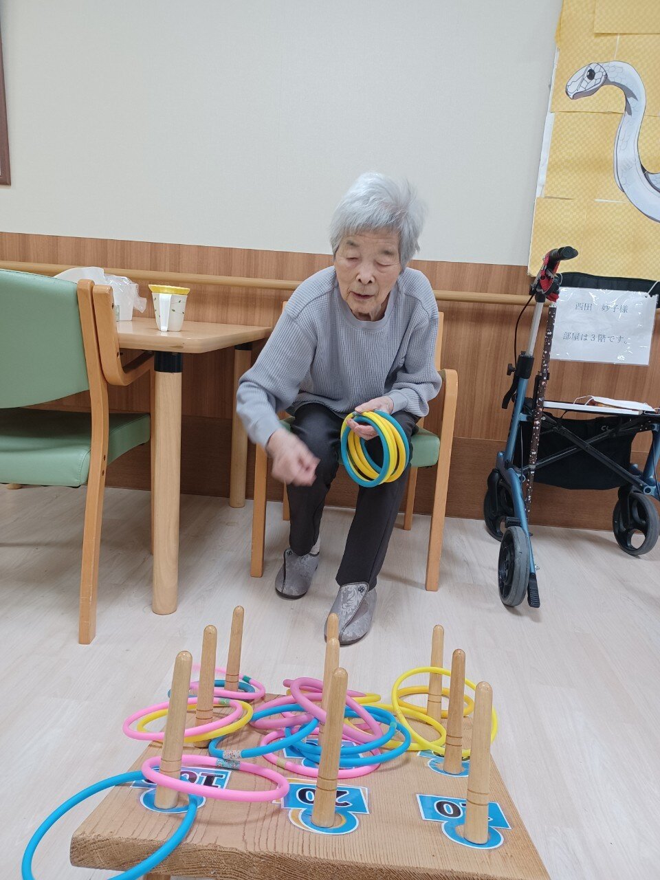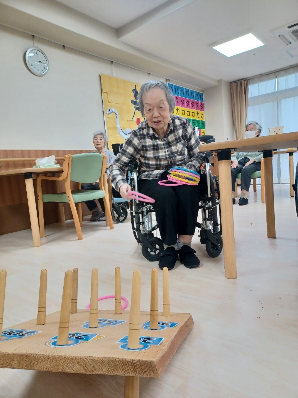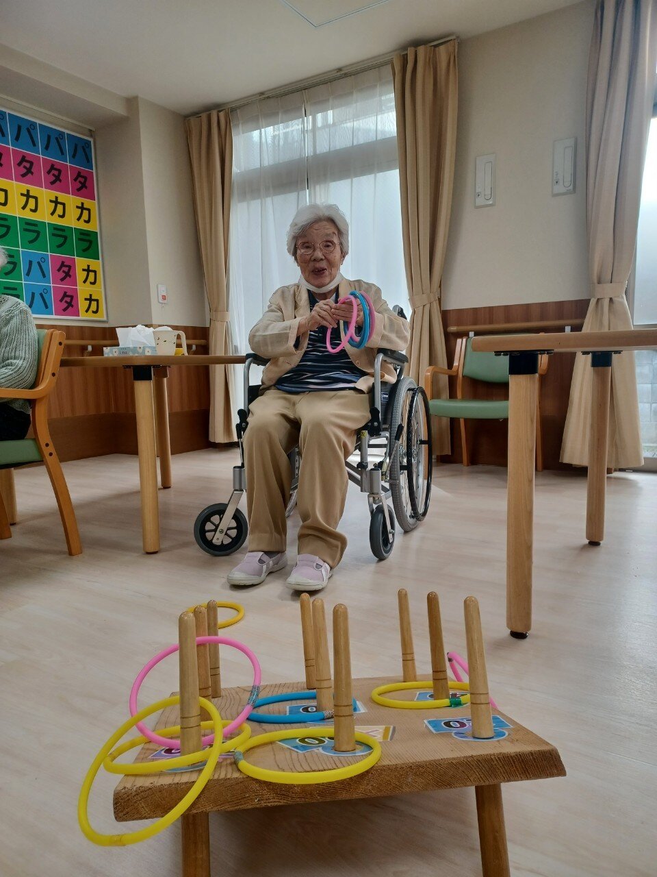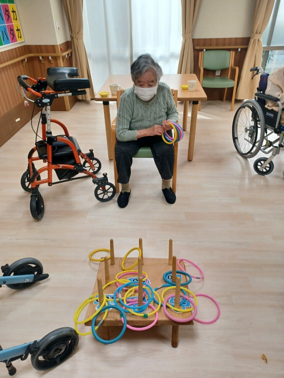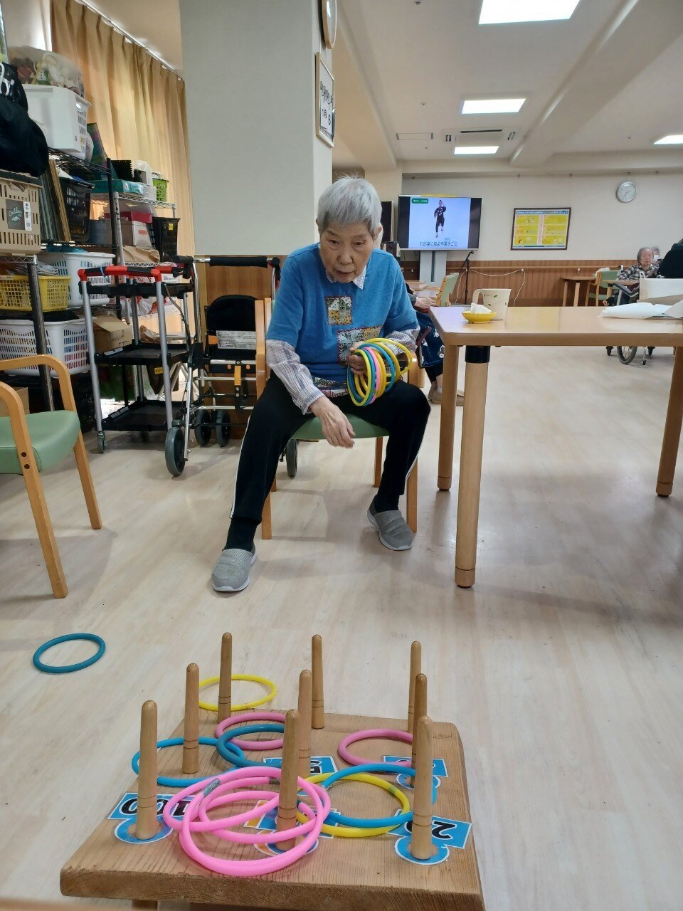 皆様、一生懸命輪を投げて上手に入れておられました。