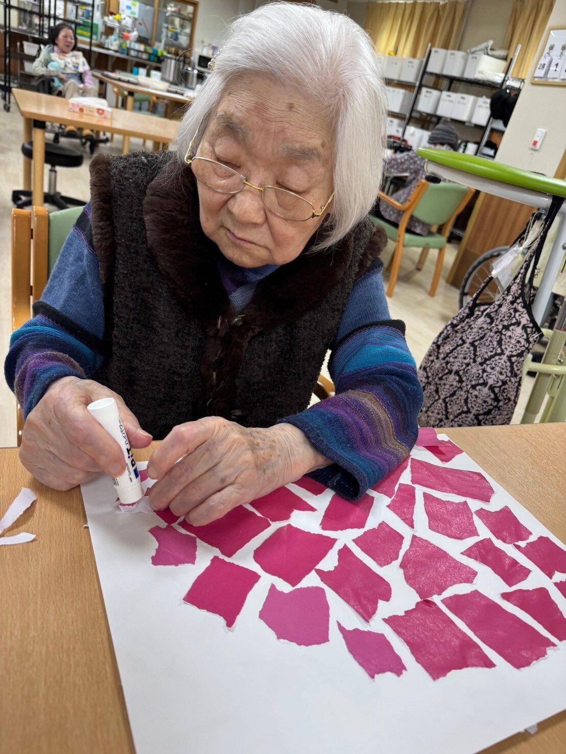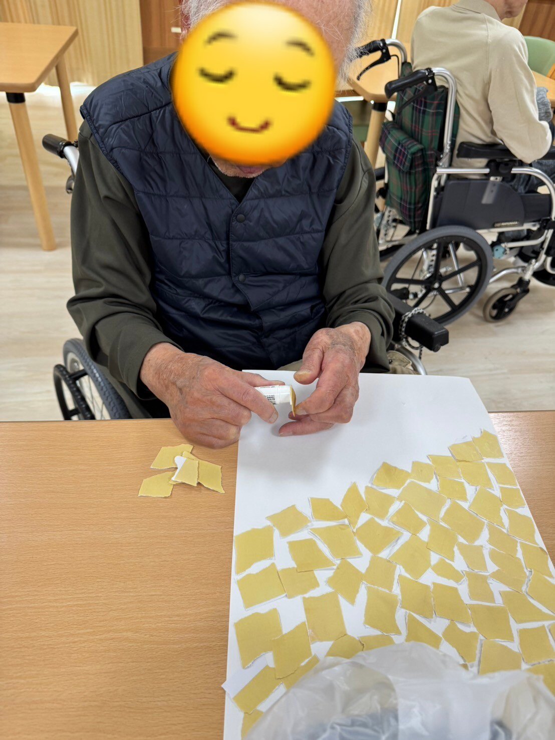 色とりどりの画用紙をぺたぺた貼ってくださっています。