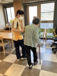 4階のリハビリ室を覗くと、理学療法士の先生が、ご入居者様と歩行訓練に取組んでおられました。