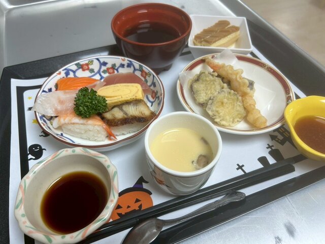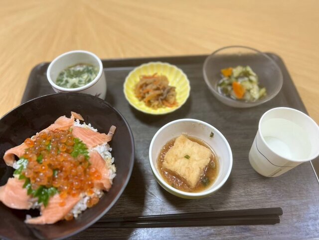 週に1回、ご自身でメニューを見てお好きな方を選択できる「ごちそうメニュー」をご用意しています(1食+500円) 。皆様、「今日はどっちにしようかな」と毎週楽しみにされています 。 -