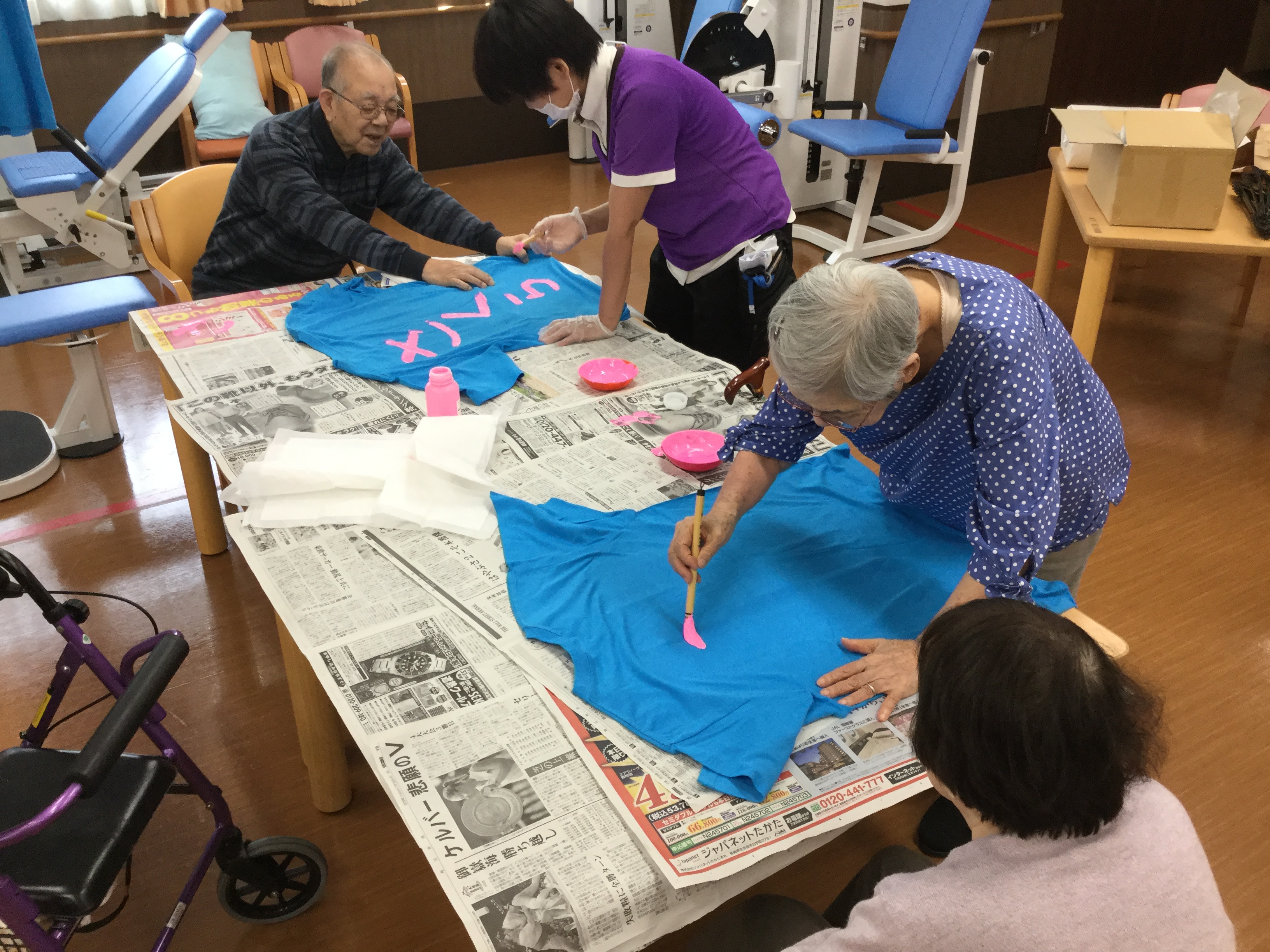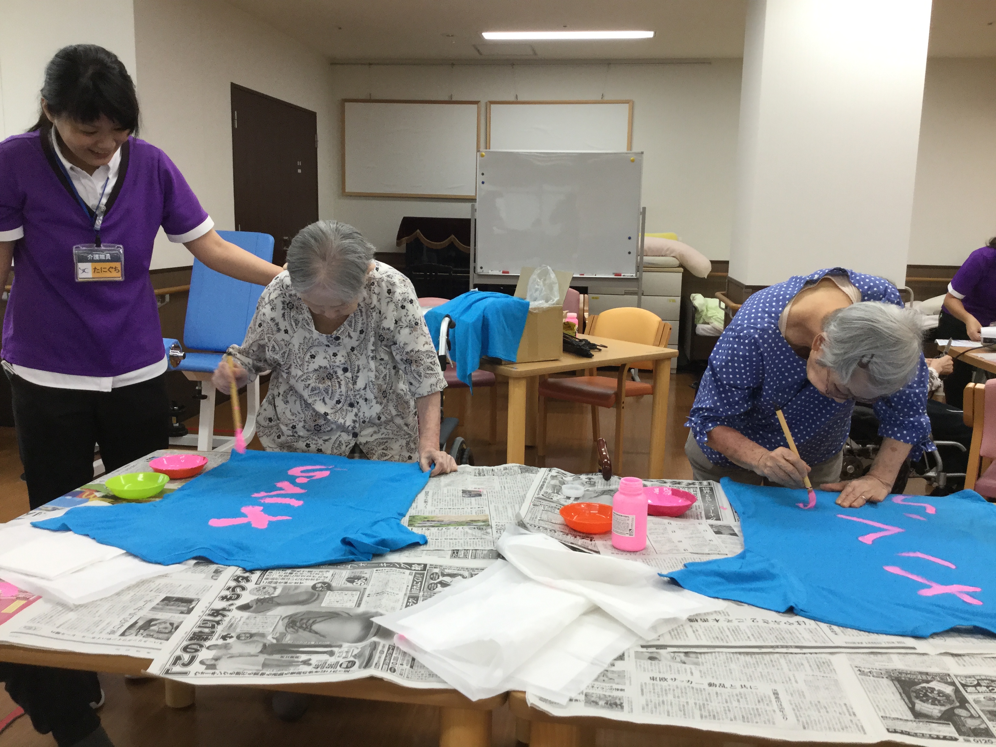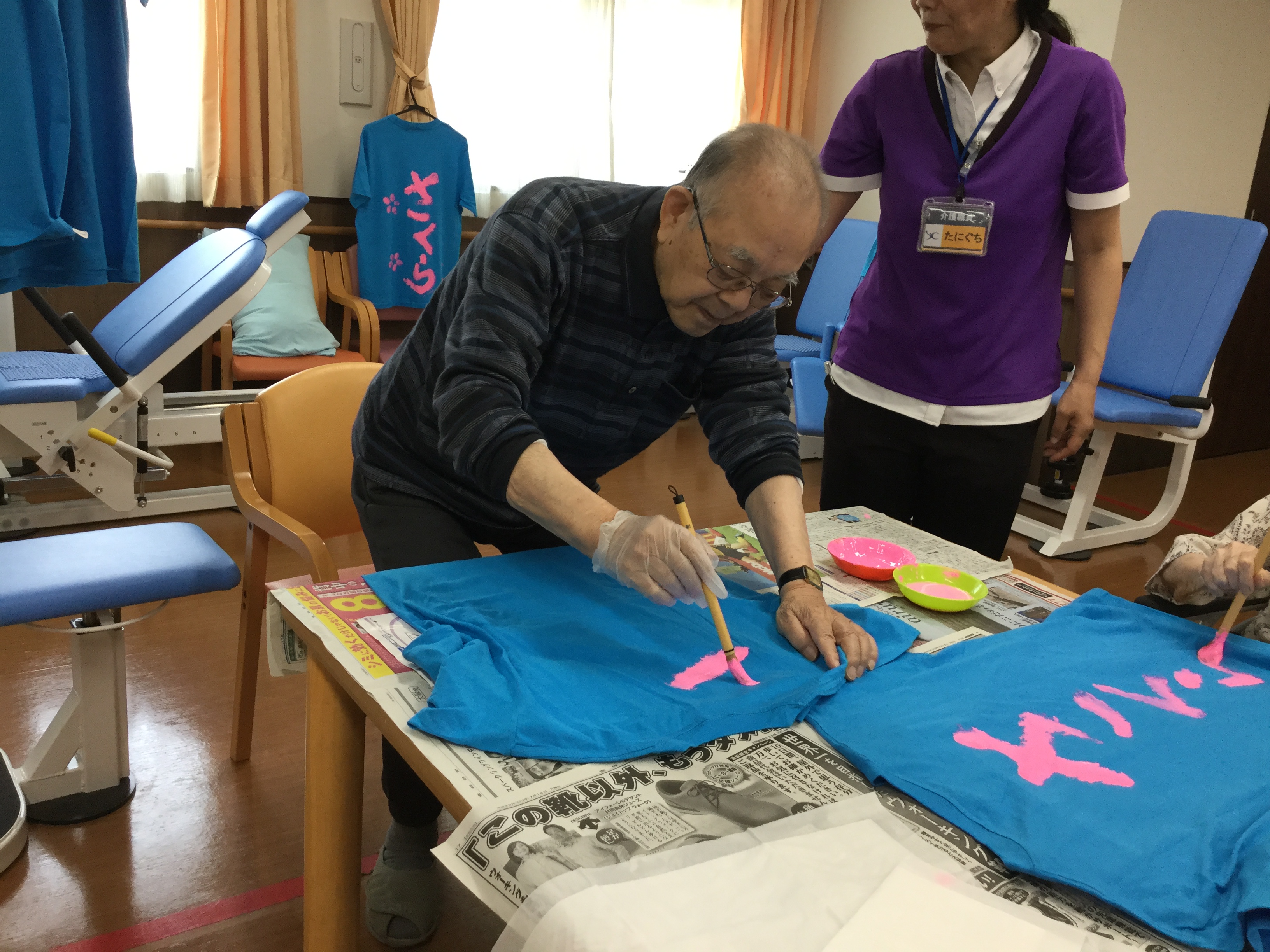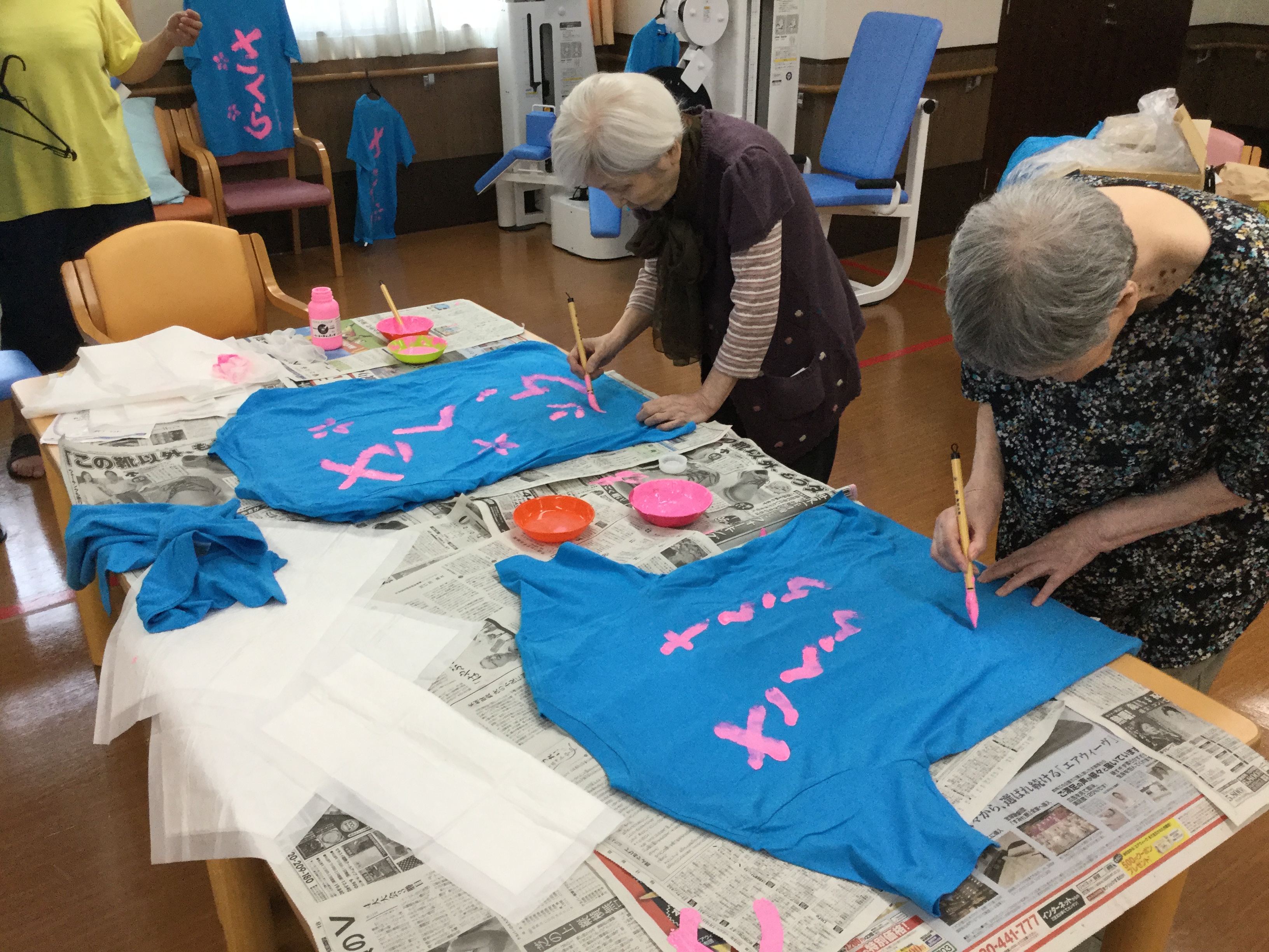 ご入居者の皆さんと一緒にシャツに文字を書きました~(*>u<*)ノ