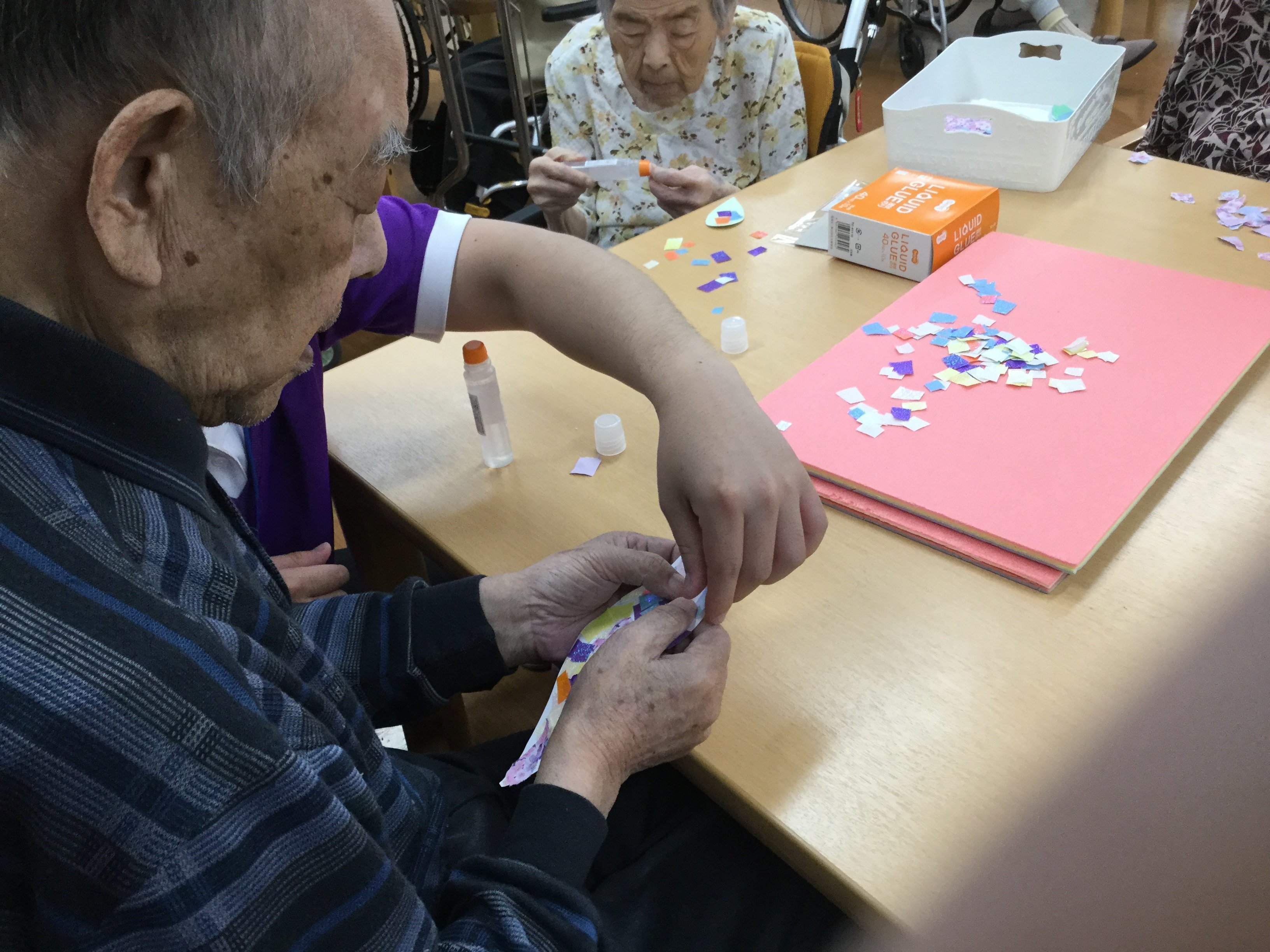 さてさて今回は、ちぎり絵レクリエーションの模様をお届けしたいと思いますよ!(●´ω`●)