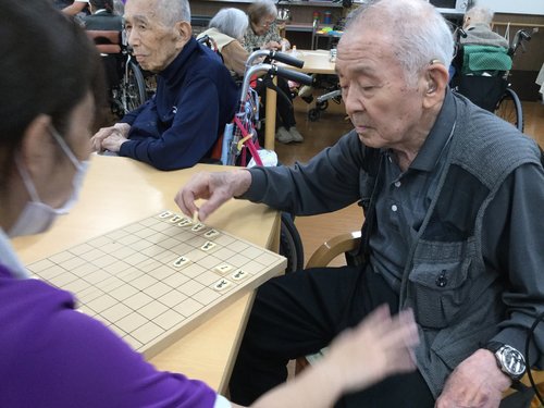 職員が無謀にも、百戦錬磨のご入居者に、はさみ将棋を仕掛けていました......