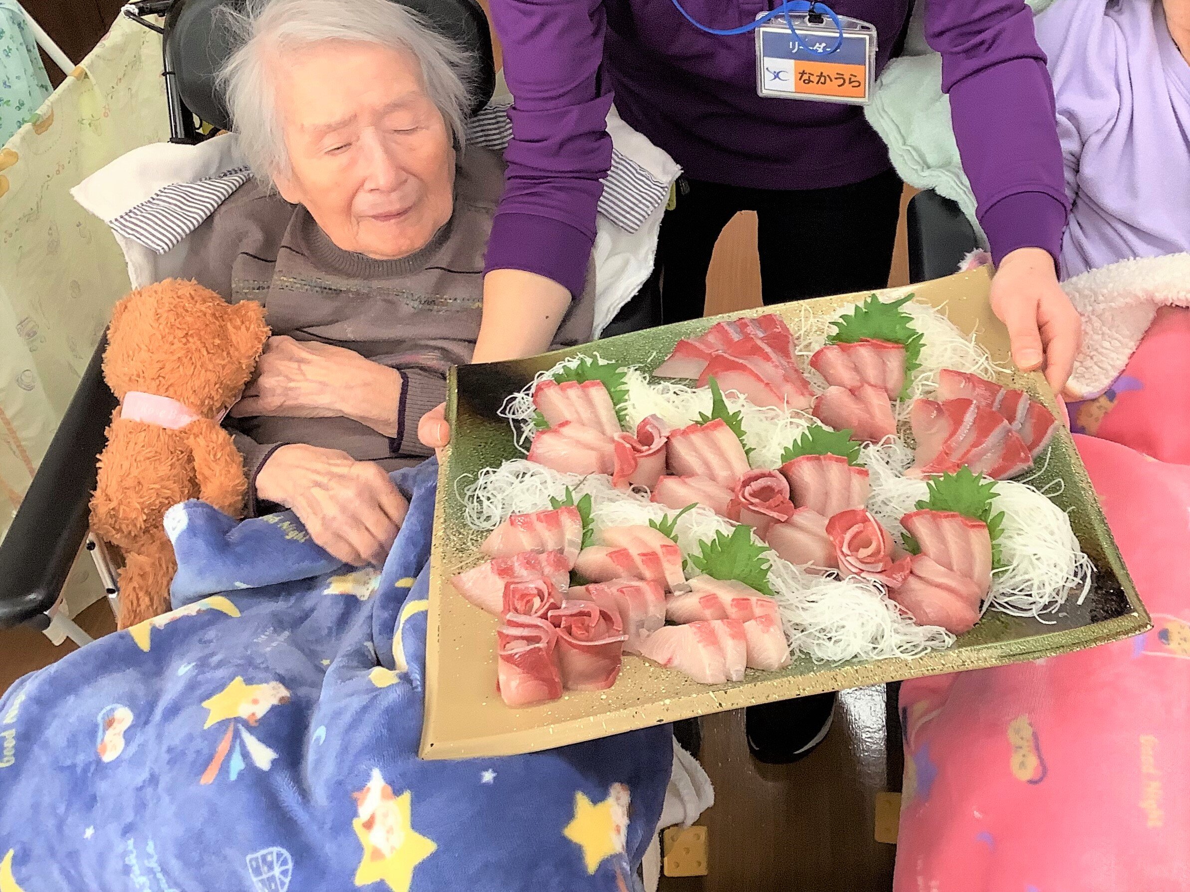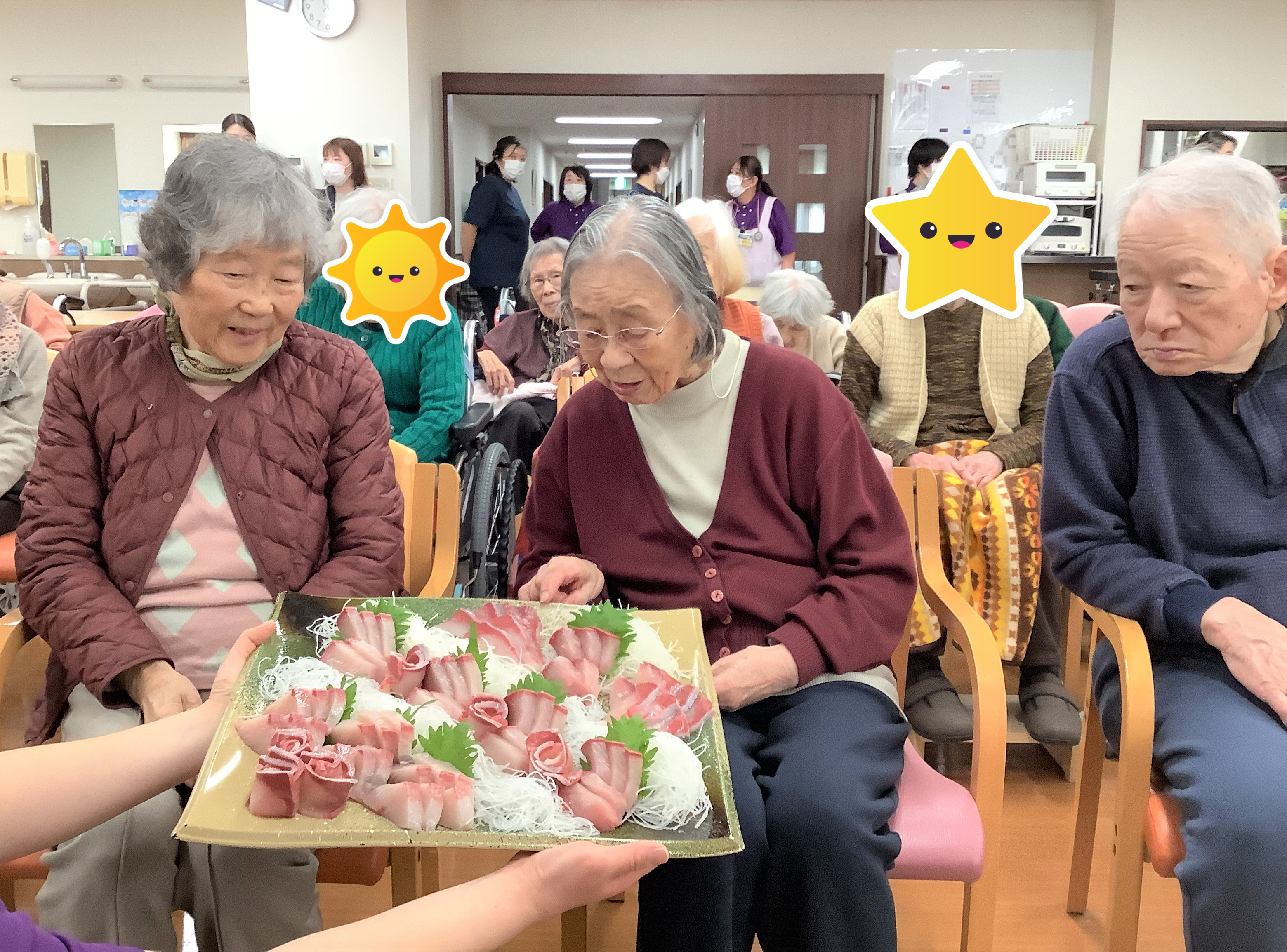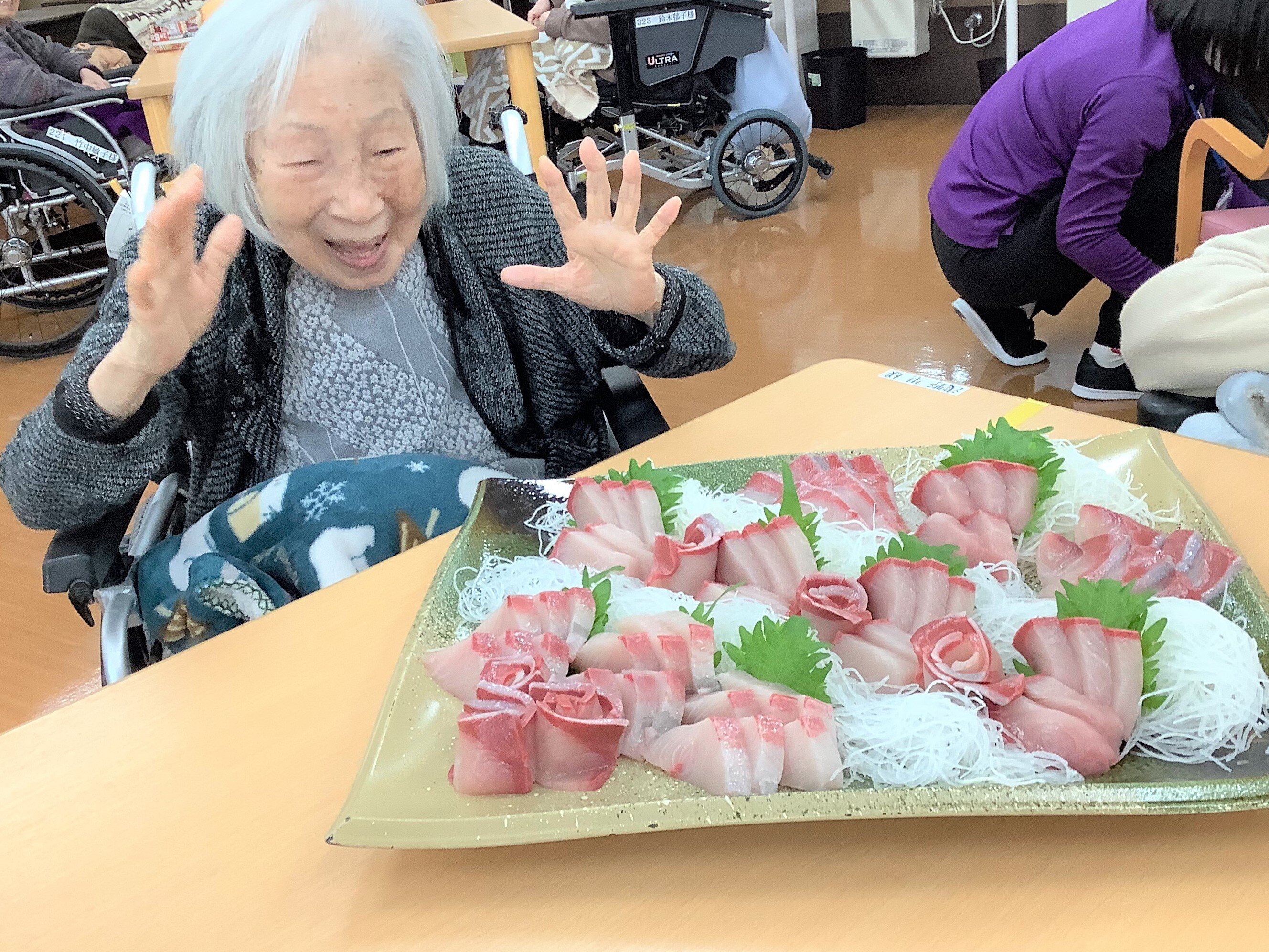板前さんが捌いたブリを綺麗に盛り付けましたー!