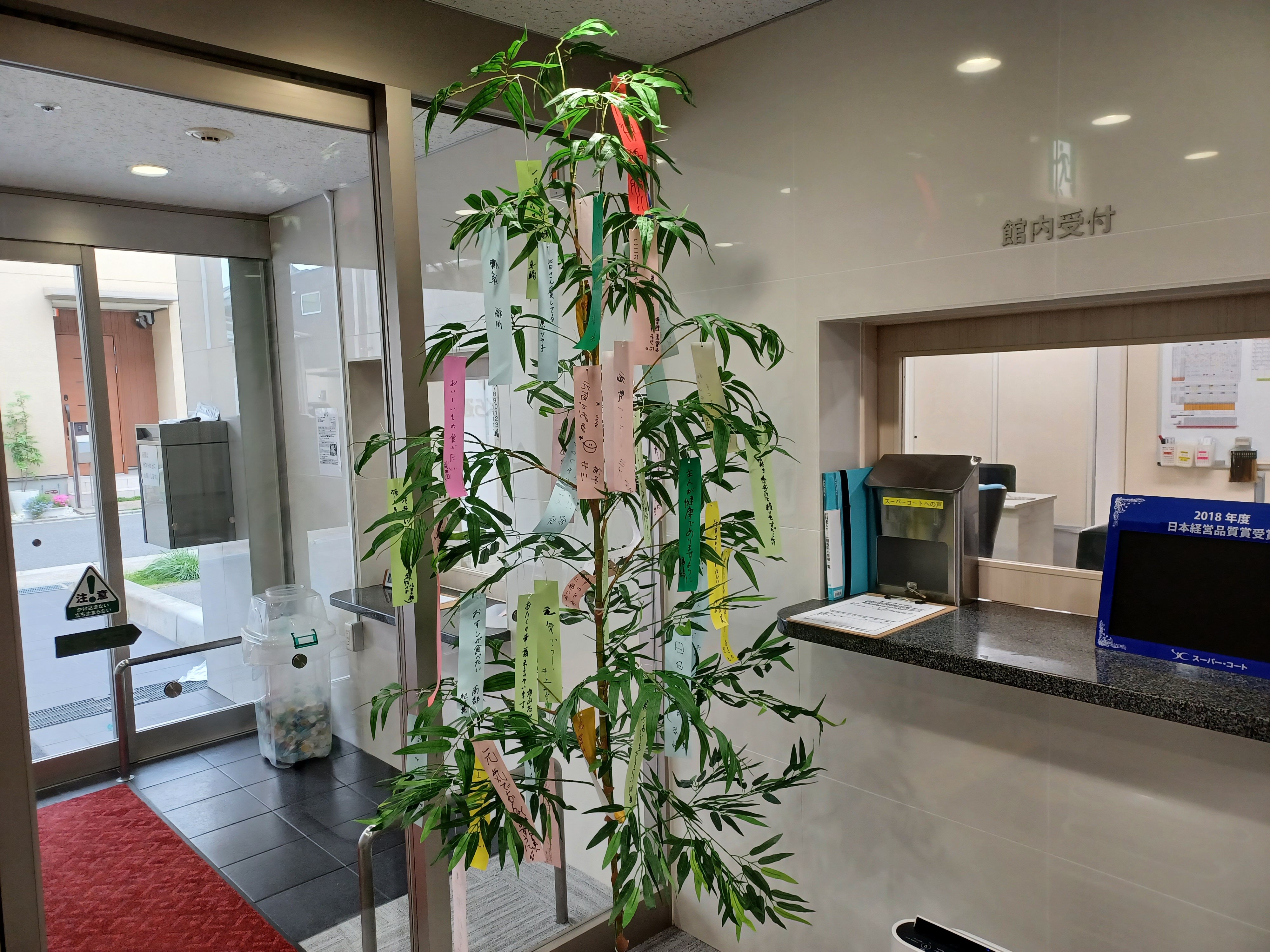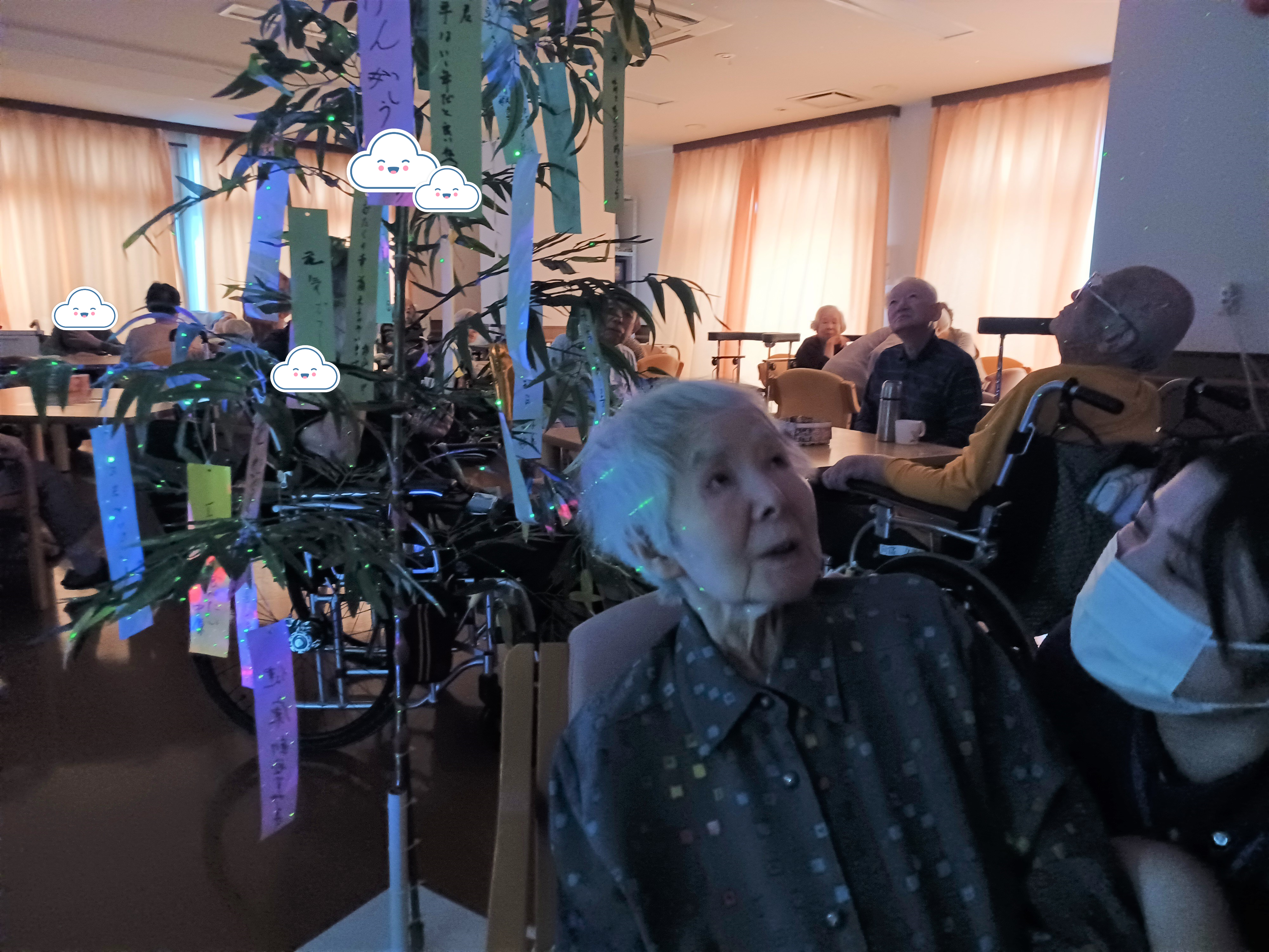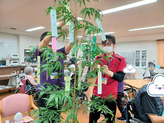 願い事を書いた短冊が集まりましたので職員が飾りつけをしましたよ~