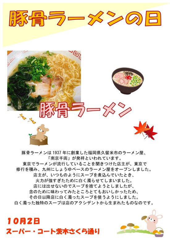 「豚骨ラーメンの日」みんな大好き豚骨ラーメン!!