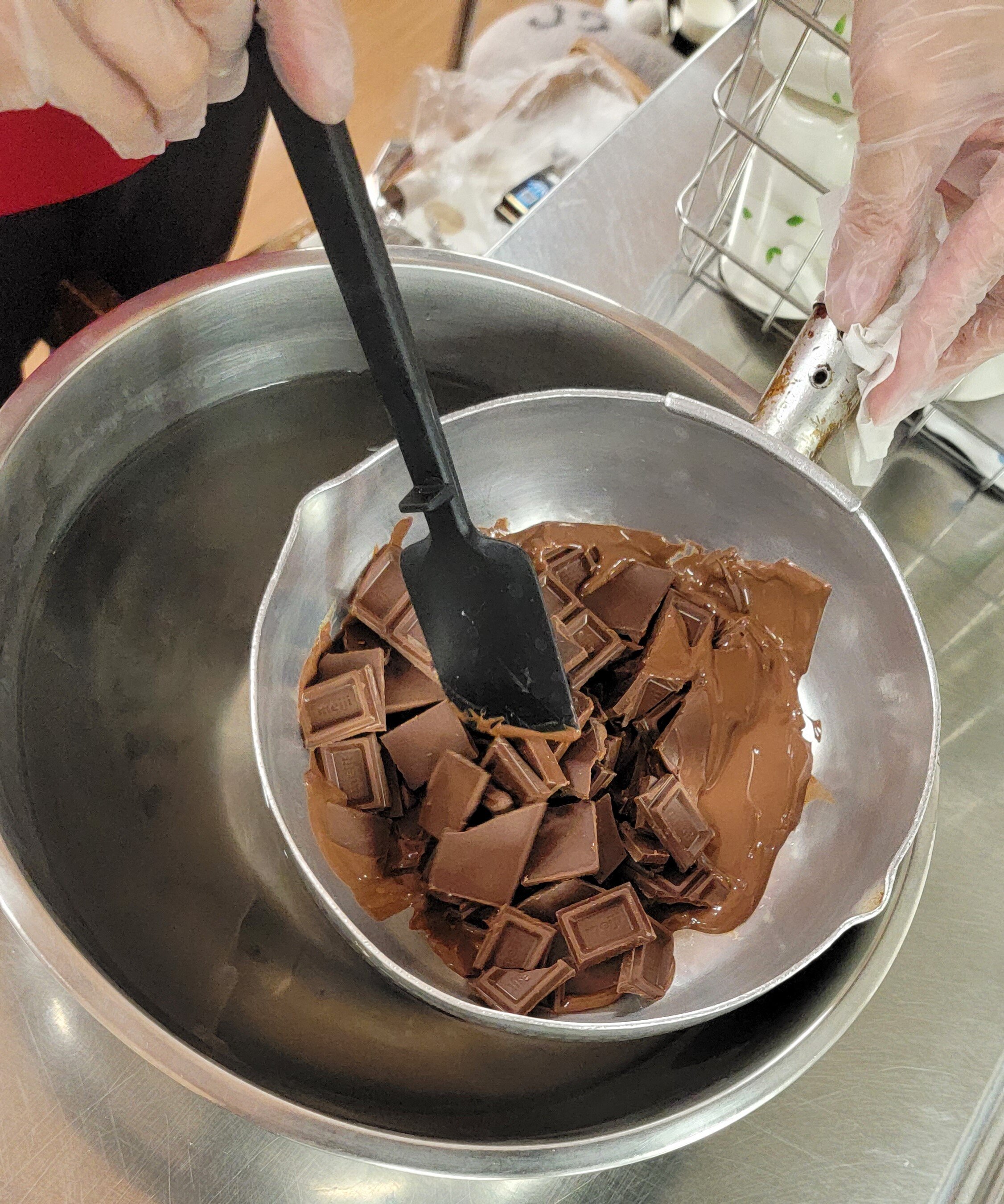 では早速チョコレートフォンデュをする為にチョコを溶かします!