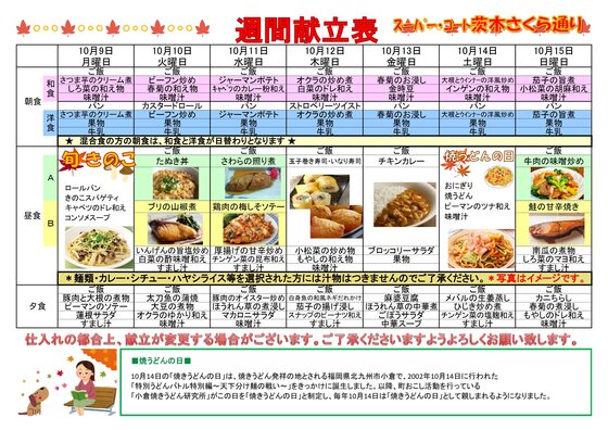 本日は来週の「献立表」をご覧いただこうと思います!