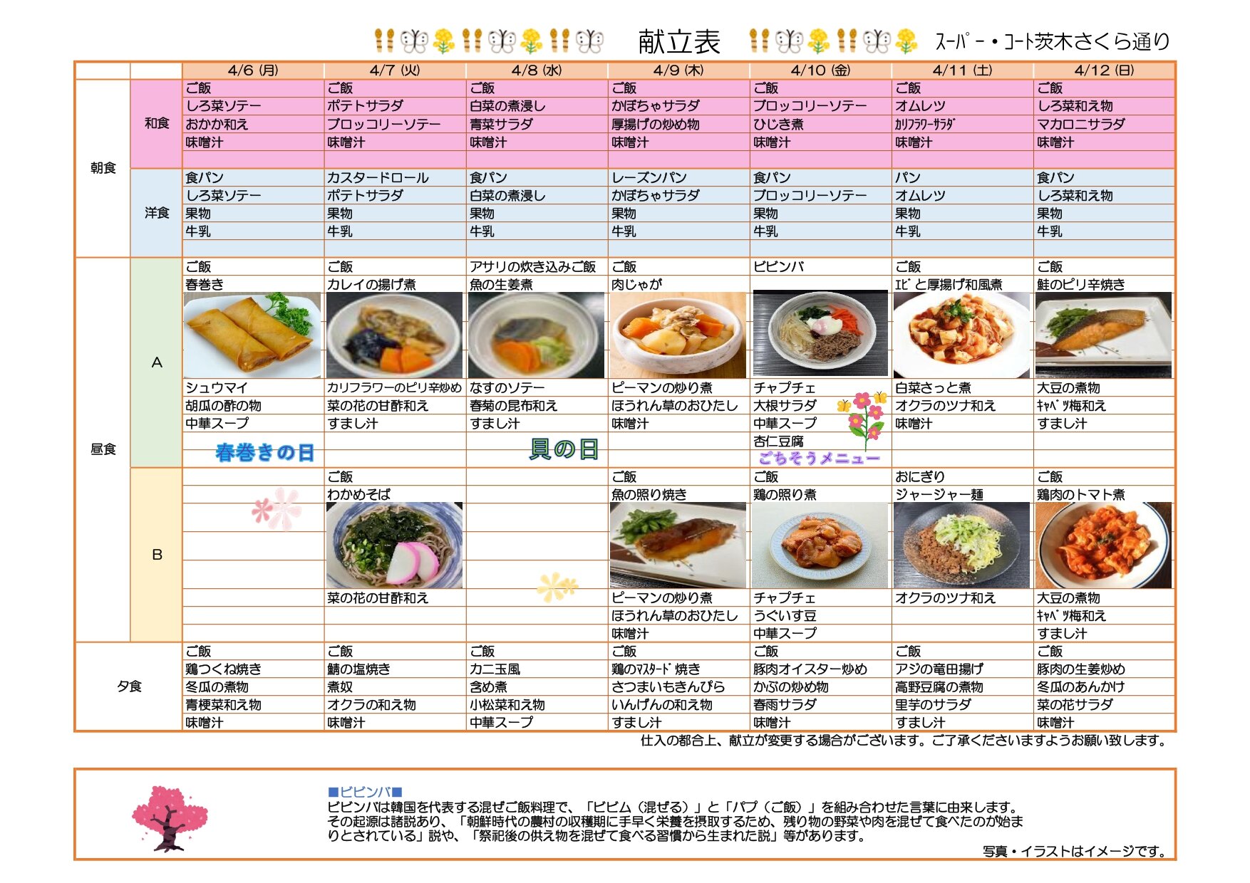 来週の献立表です!