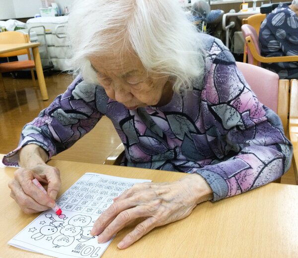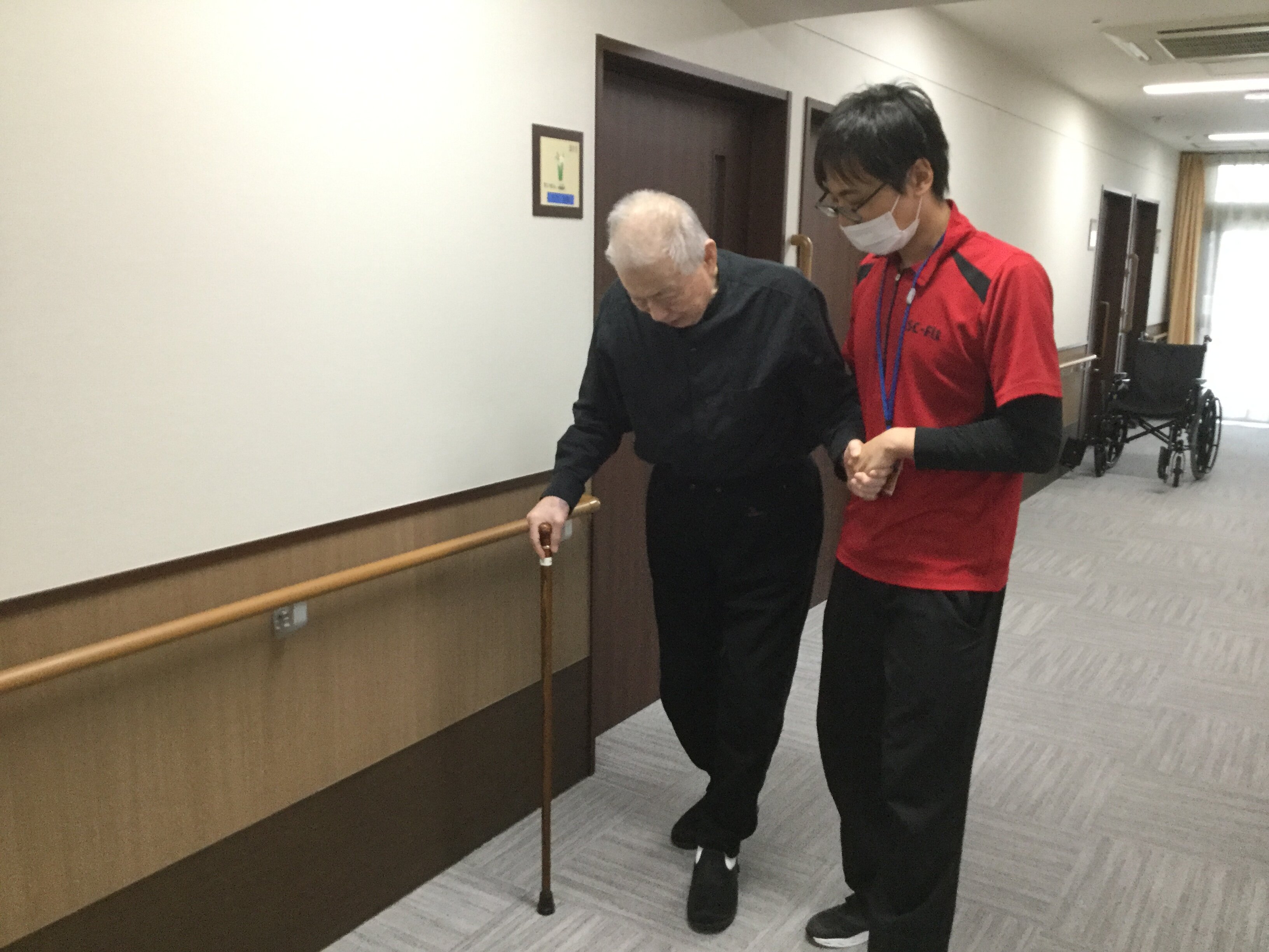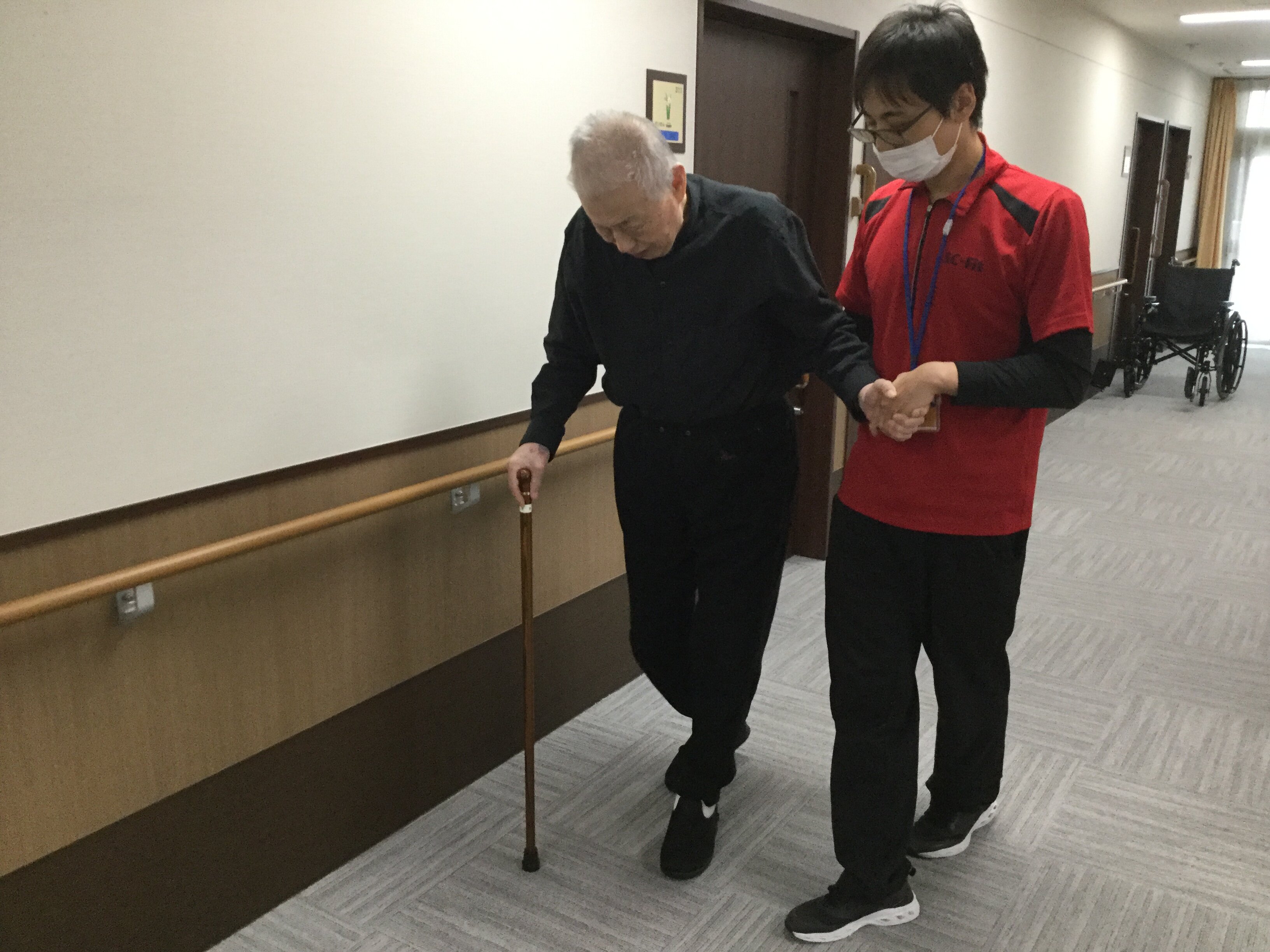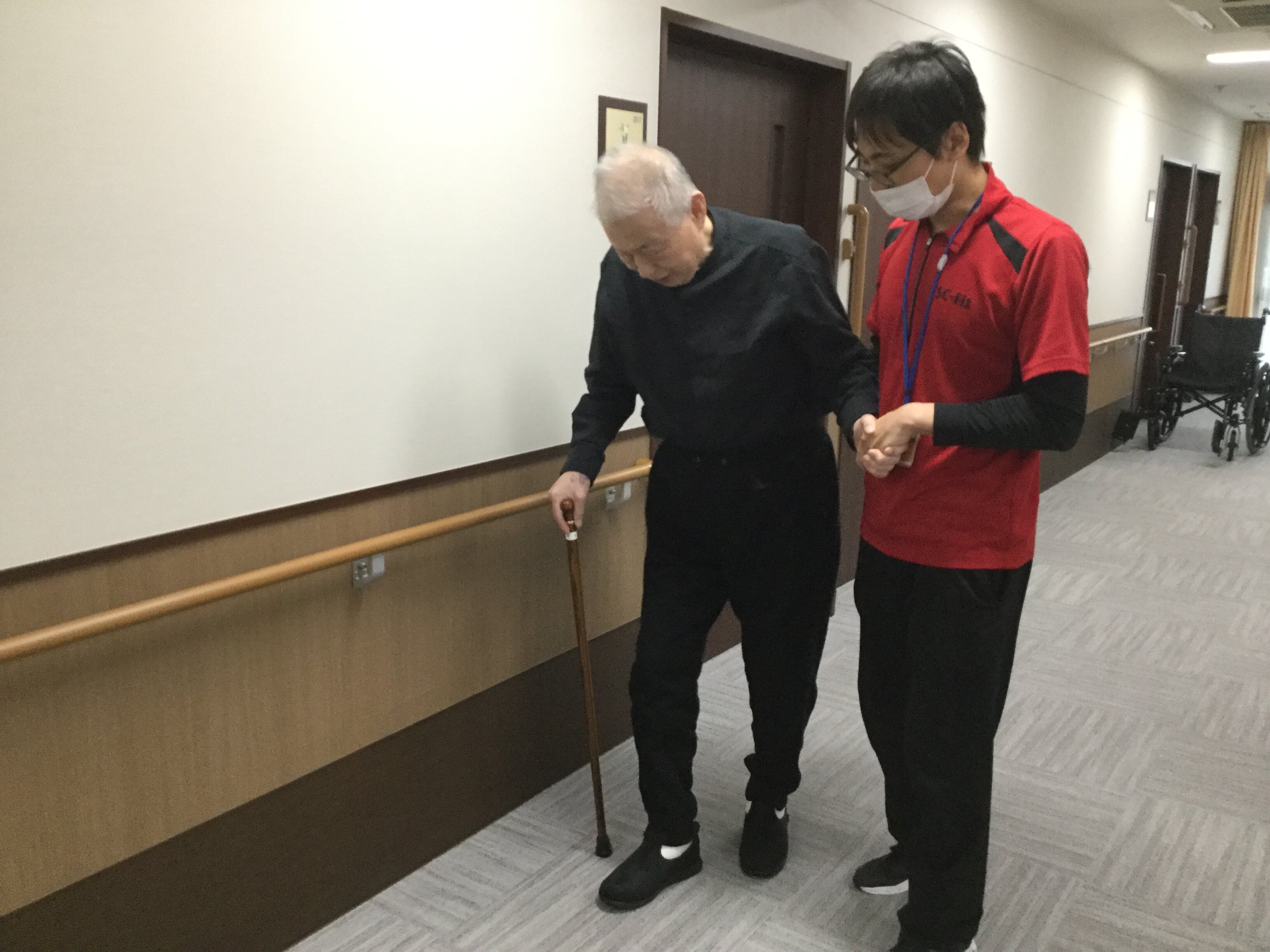 雪がちらつく季節になり、寒さが身に沁みますが、当施設のご入居者は今日も頑張って、訓練をしていただいております。